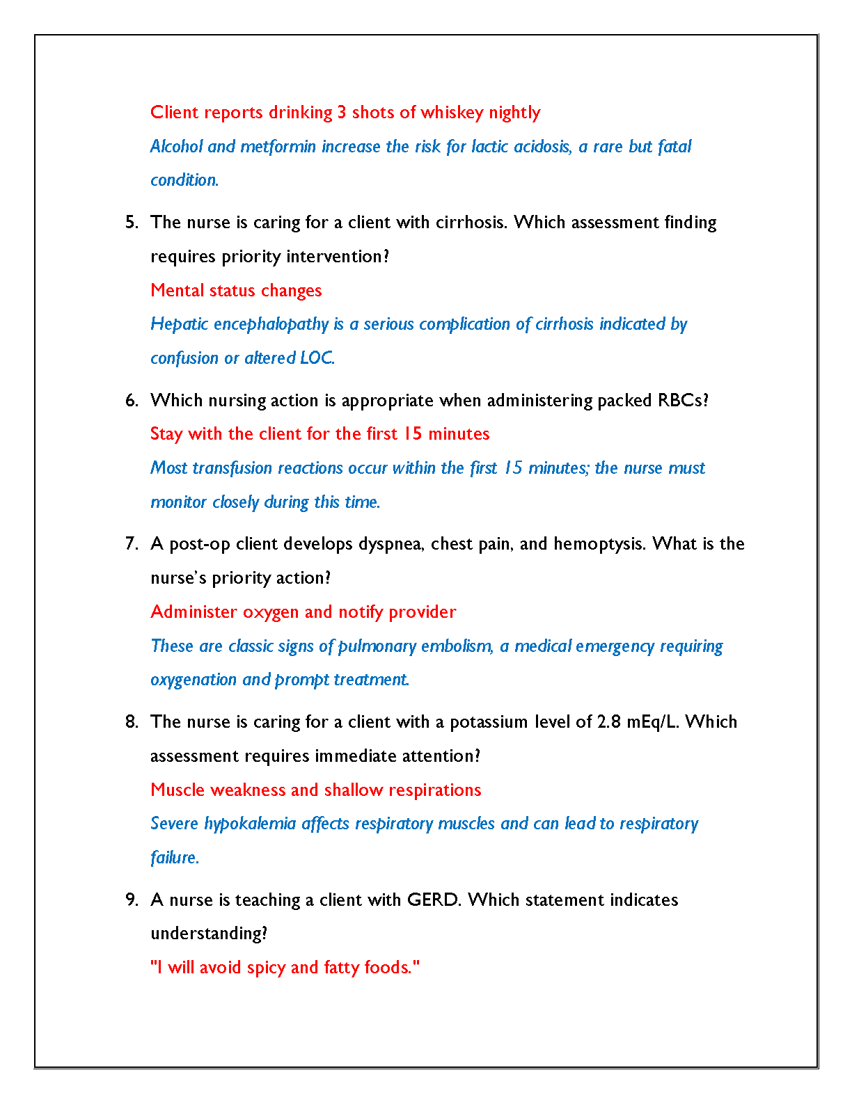 Ace your NUR 1460C Final Exam 1 at Florida State College at Jacksonville with our comprehensive 2025 test bank. This essential study guide provides a complete set of questions meticulously curated from the course curriculum. Each question comes with a verified correct answer and a detailed rationale to help you understand the 'why' behind the solution. Master complex nursing concepts, practice with real exam-style questions, and build the confidence you need to pass on your first attempt. Perfect for FSCJ nursing students looking for a reliable and up-to-date resource to conquer their final exam.