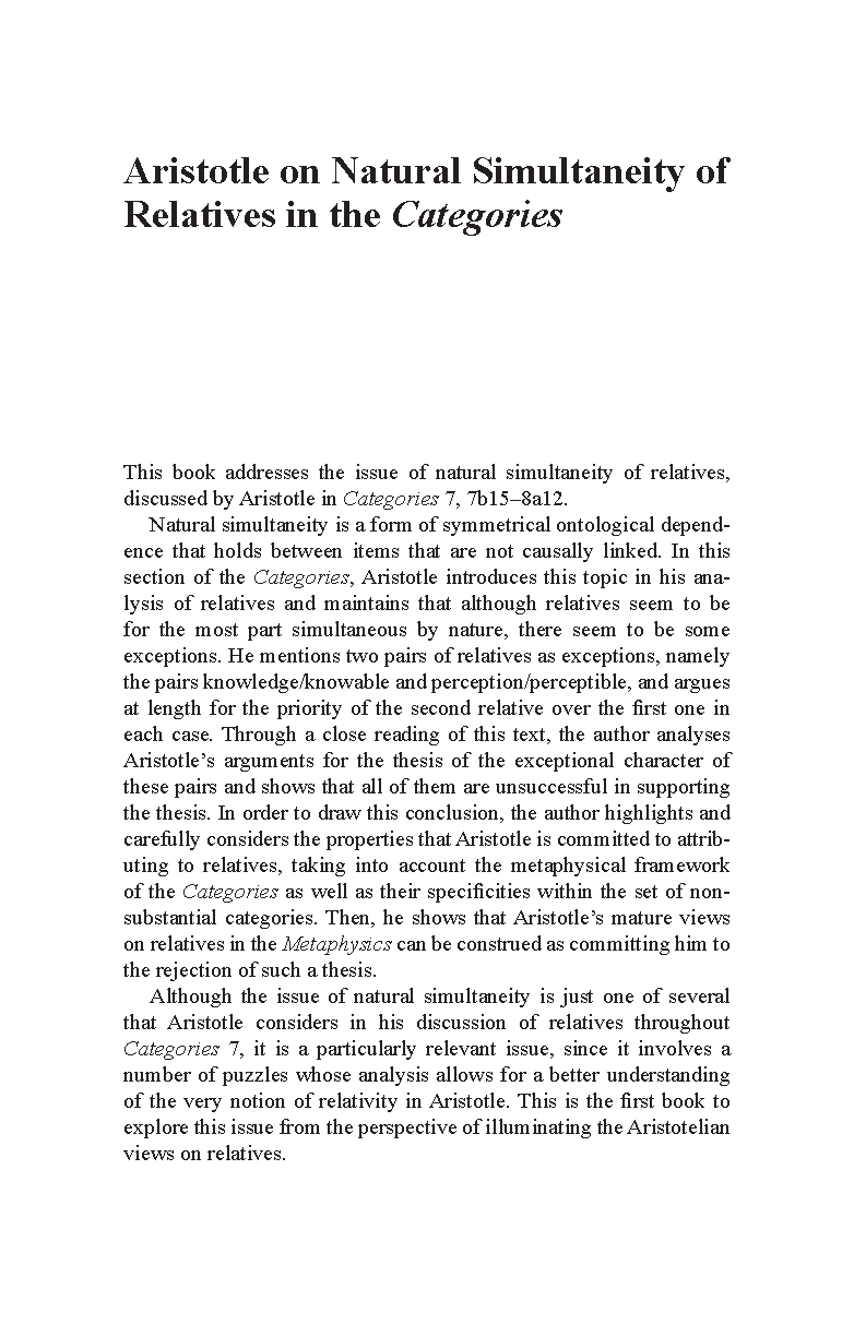First-Attempt Exam Success in Philosophy 2025/2026: Aristotle on Natural Simultaneity of Relatives in the Categories, 1st Edition by António Pedro Mesquita