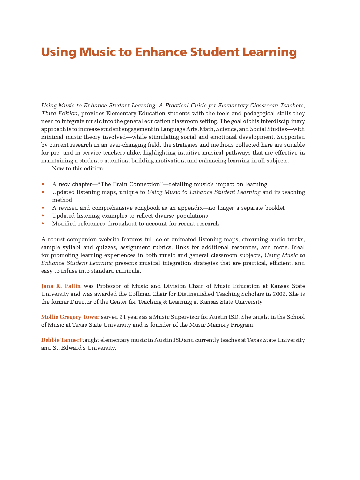 Test Bank for Using Music to Enhance Student Learning: A Practical Guide for Elementary Classroom Teachers, 3rd Edition by Jana R. Fallin, Mollie Gregory Tower, and Debbie Tannert