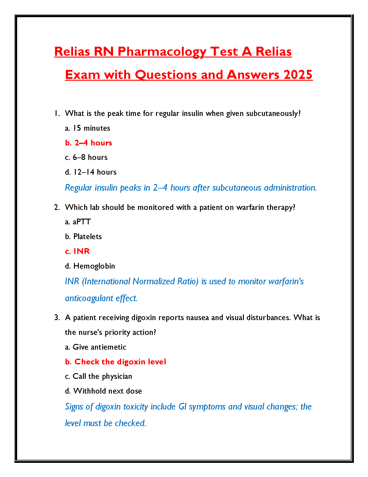 Relias RN Pharmacology Test A Exam [2025/2026] - Verified Questions and Answers Study Guide for First-Attempt Success