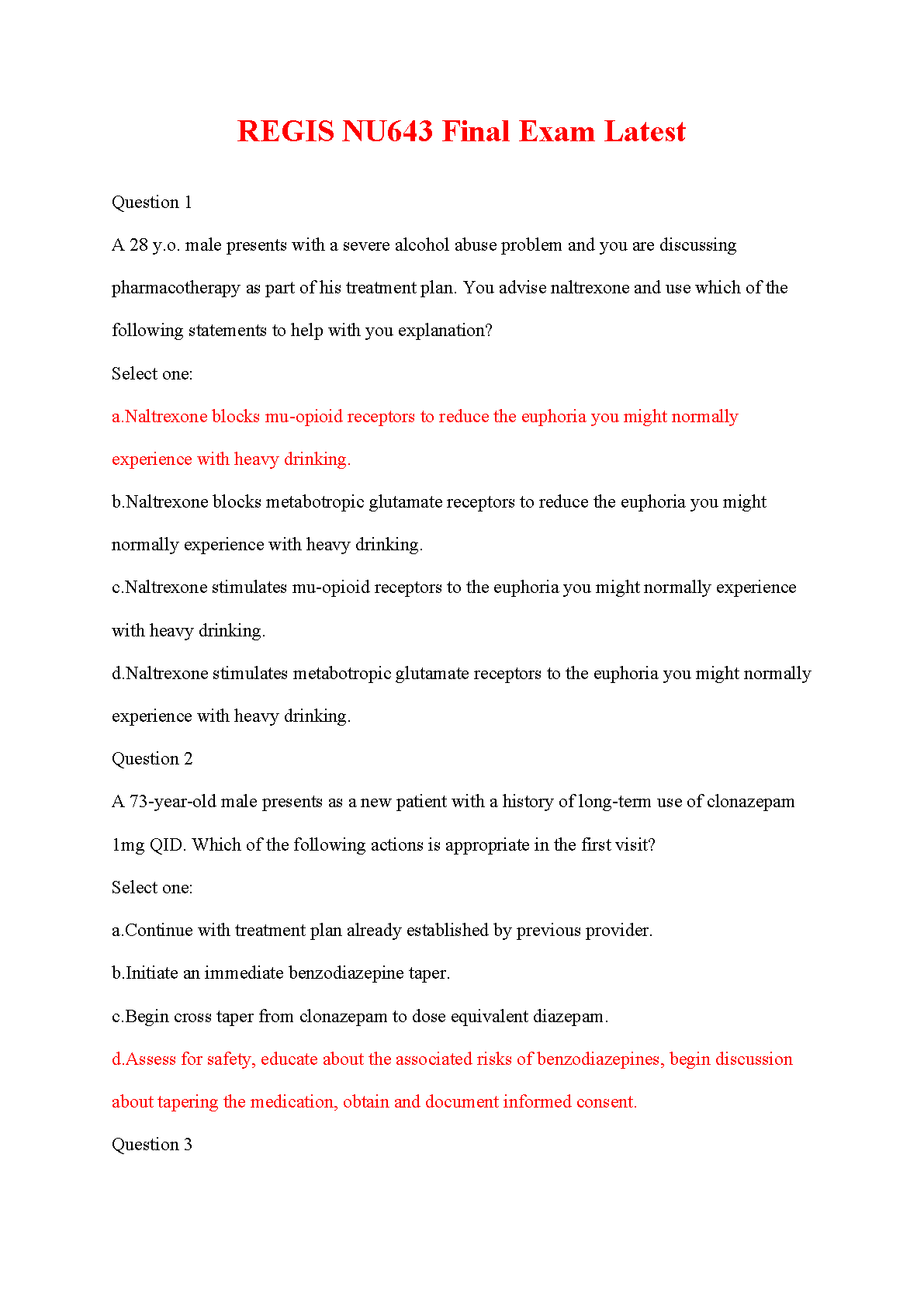 Regis NU643 Psychopharmacology Final Exam Test Bank (Latest 2025/2026 Edition) - Verified Q&A Study Guide