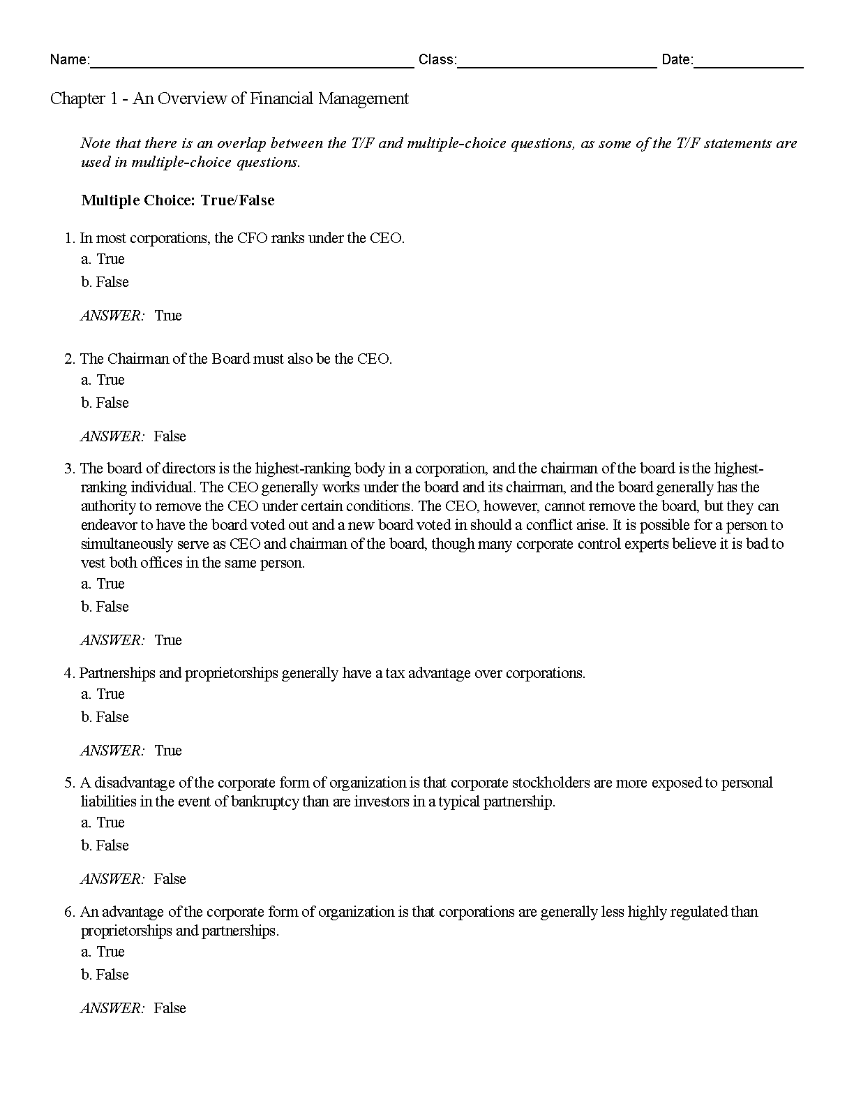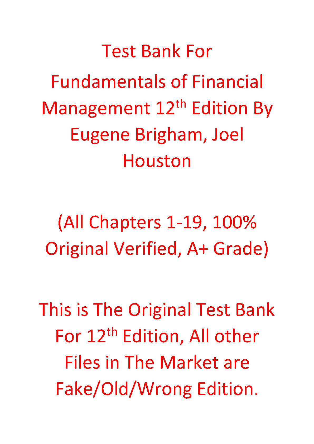 Test Bank for Fundamentals of Financial Management, 12th Edition by Eugene F. Brigham & Joel F. Houston