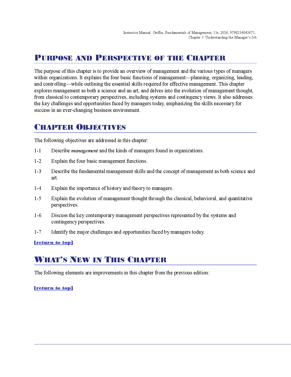 Fundamentals of Management, 11th Edition by Ricky W. Griffin - Official Instructor's Manual (Chapters 1-15)
