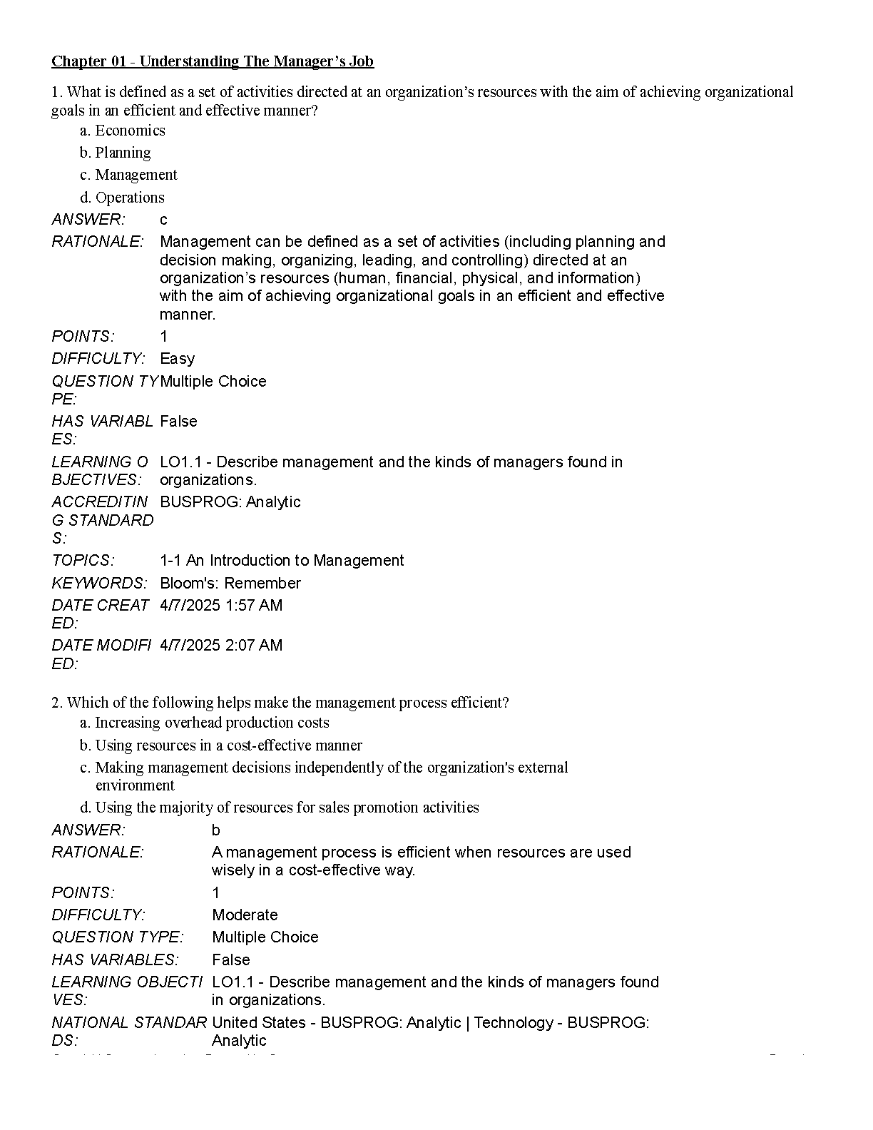 Test Bank for Fundamentals of Management, 11th Edition by Ricky W. Griffin, Jean M. Phillips, and Stanley M. Gully