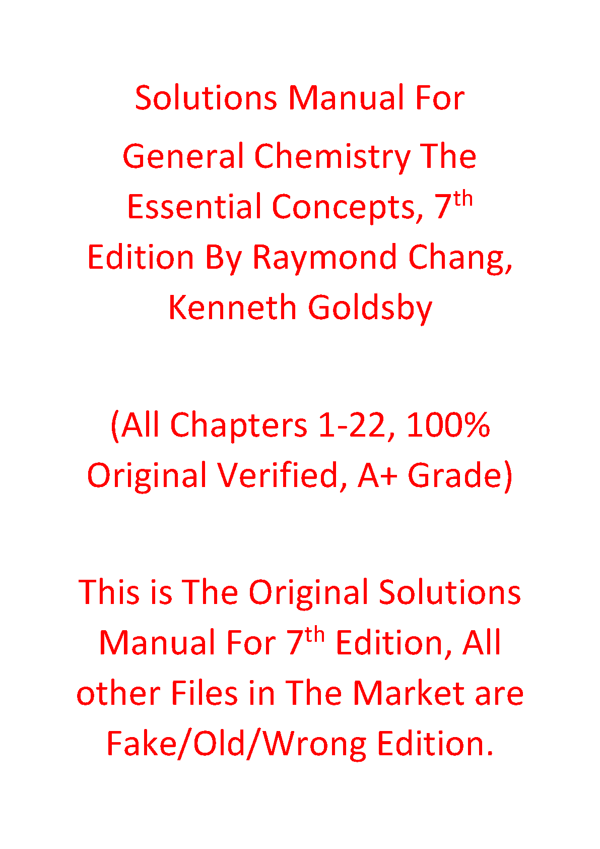 Achieve top grades with the official and verified Solutions Manual for 'General Chemistry: The Essential Concepts,' 7th Edition. Authored by Raymond Chang and Kenneth Goldsby, this guide provides comprehensive, step-by-step solutions for all 22 chapters. This is the authentic resource you need to master complex topics, confidently complete homework, and excel in your exams. Avoid incomplete or incorrect versions and get immediate access to the verified answers that will help you succeed.