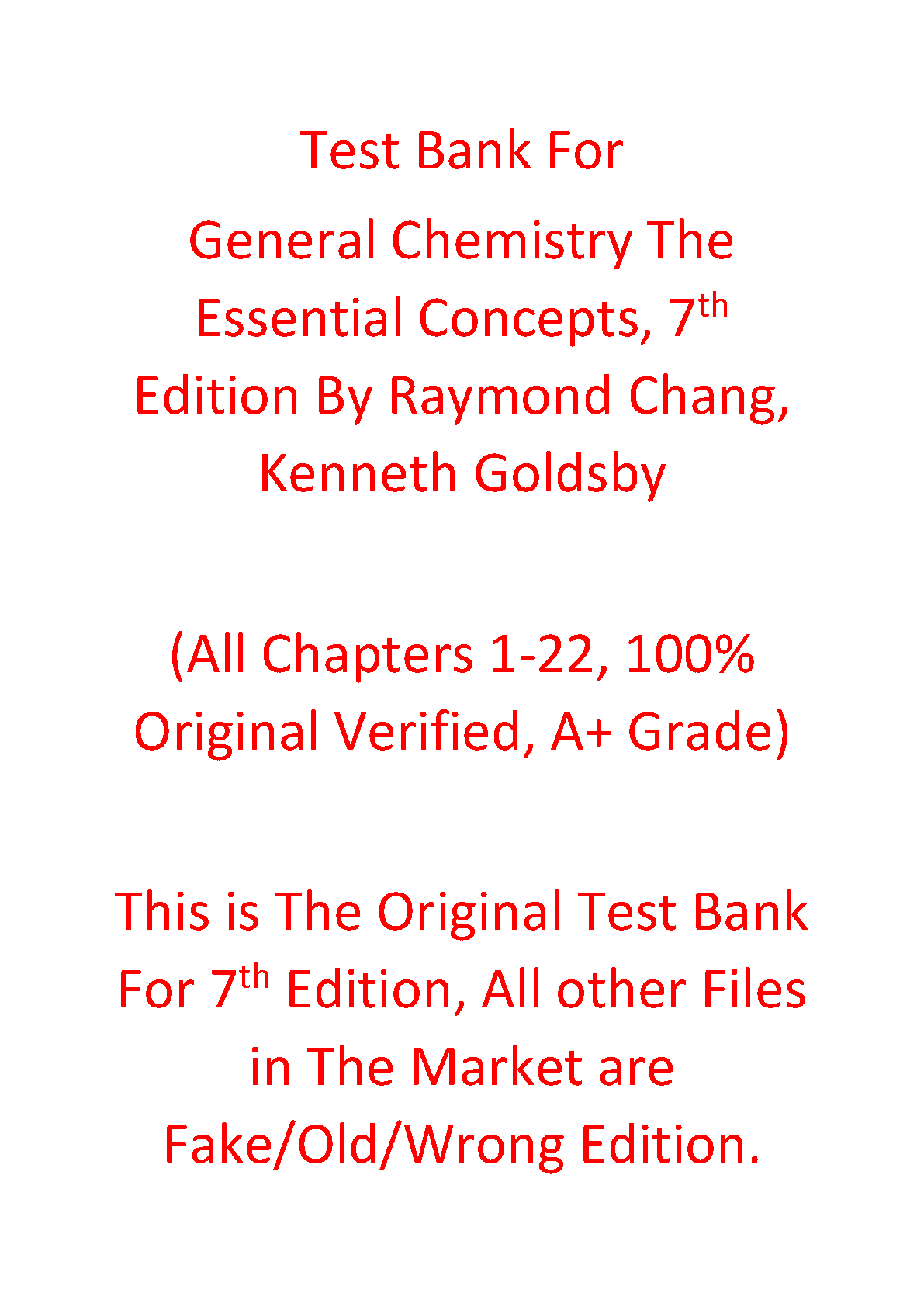 Test Bank for General Chemistry: The Essential Concepts, 7th Edition by Raymond Chang & Kenneth Goldsby