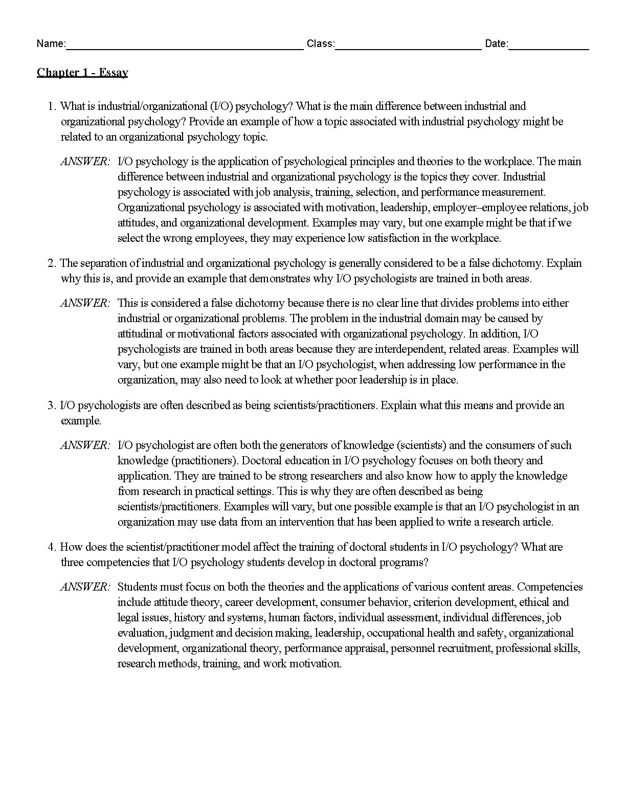 Official Test Bank for Industrial Organizational Psychology: Understanding the Workplace, 7th Edition by Paul E. Levy