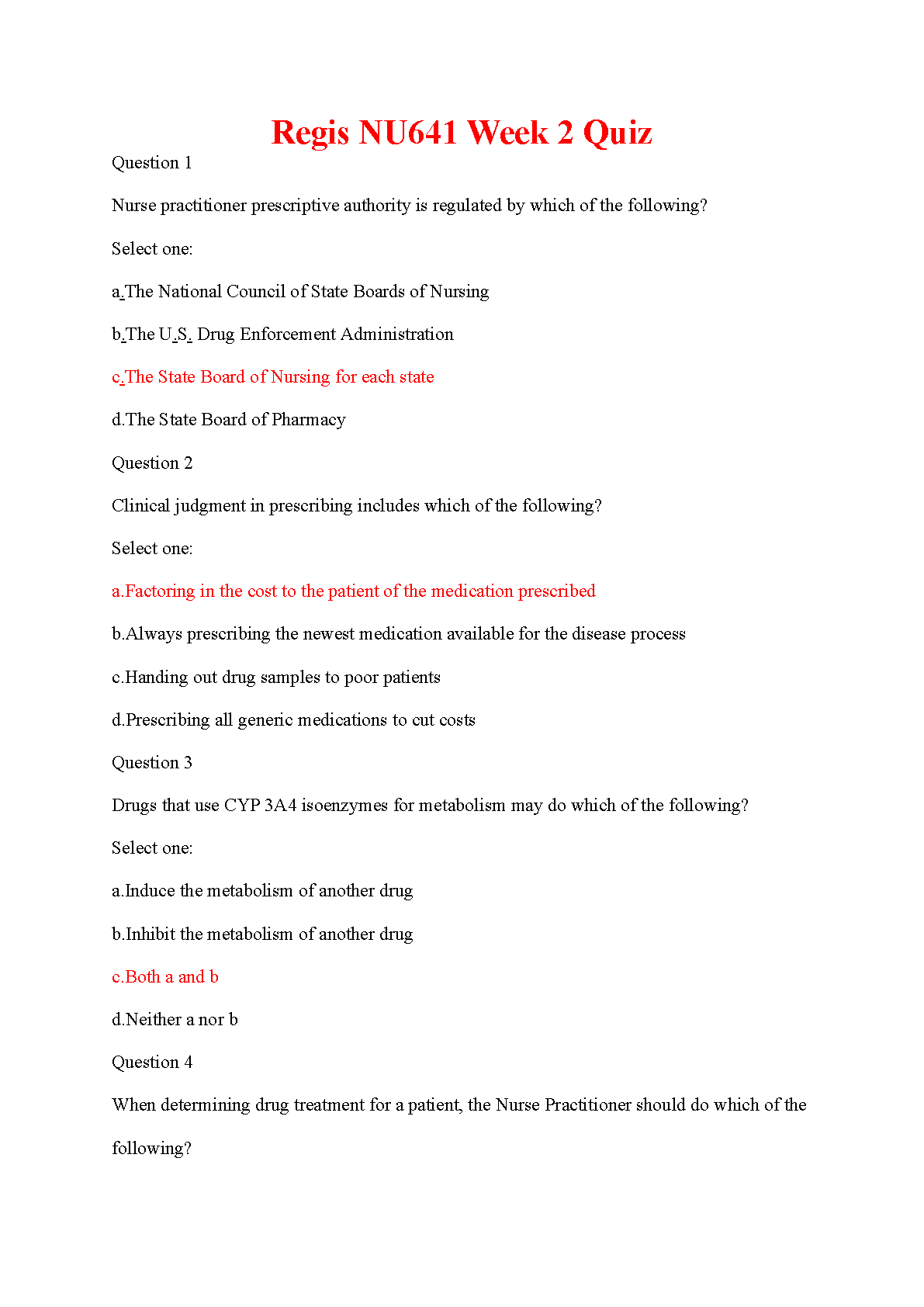 Regis NU641 Week 2 Quiz with Answers | Latest 2025/2026 Test Bank for Advanced Pharmacology