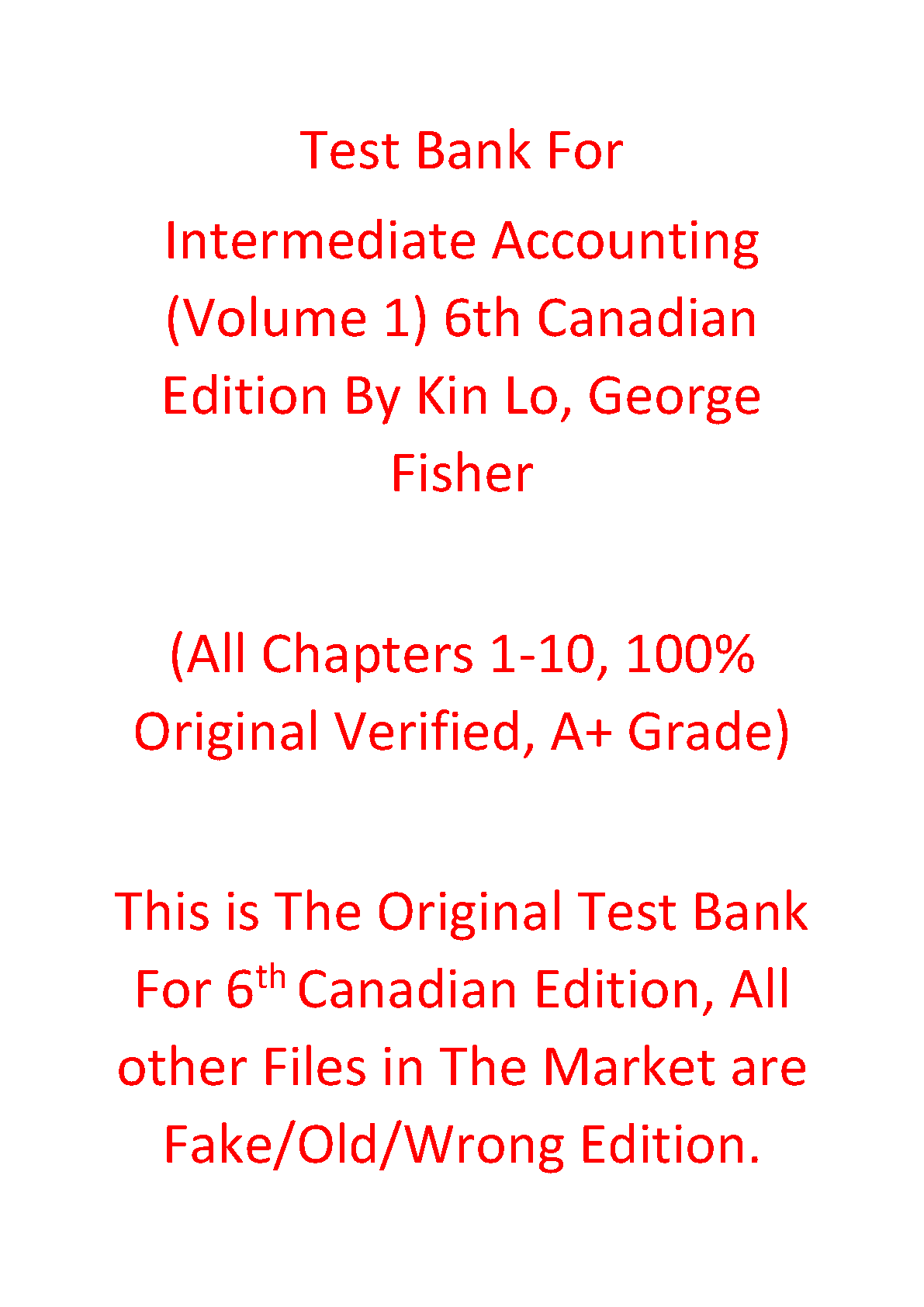 Elevate your study sessions and ace your exams with the official Test Bank for Intermediate Accounting, Volume 1, 6th Canadian Edition by Kin Lo, George Fisher, and Margaret R. Forbes. This is the complete, 100% original and verified resource covering Chapters 1-10. It's packed with exam-style questions and answers designed to help you master complex accounting principles and achieve an A+ grade. Avoid fake or outdated versions and invest in this authentic study tool to guarantee your success.