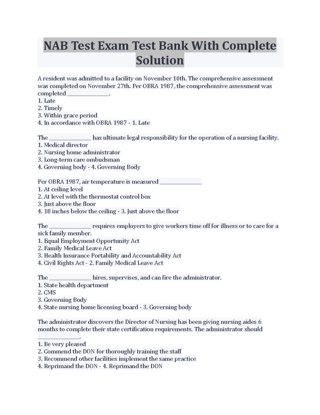 TEST BANK FOR NAB Test Exam With Complete Solution 2023/2024