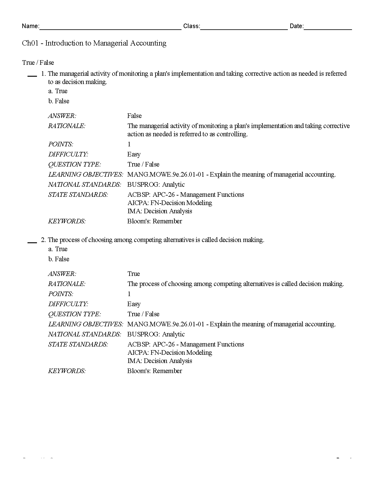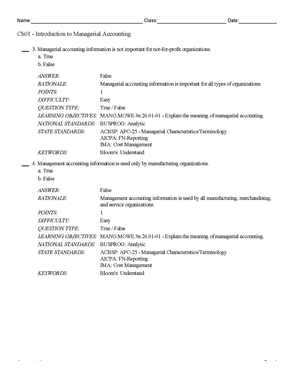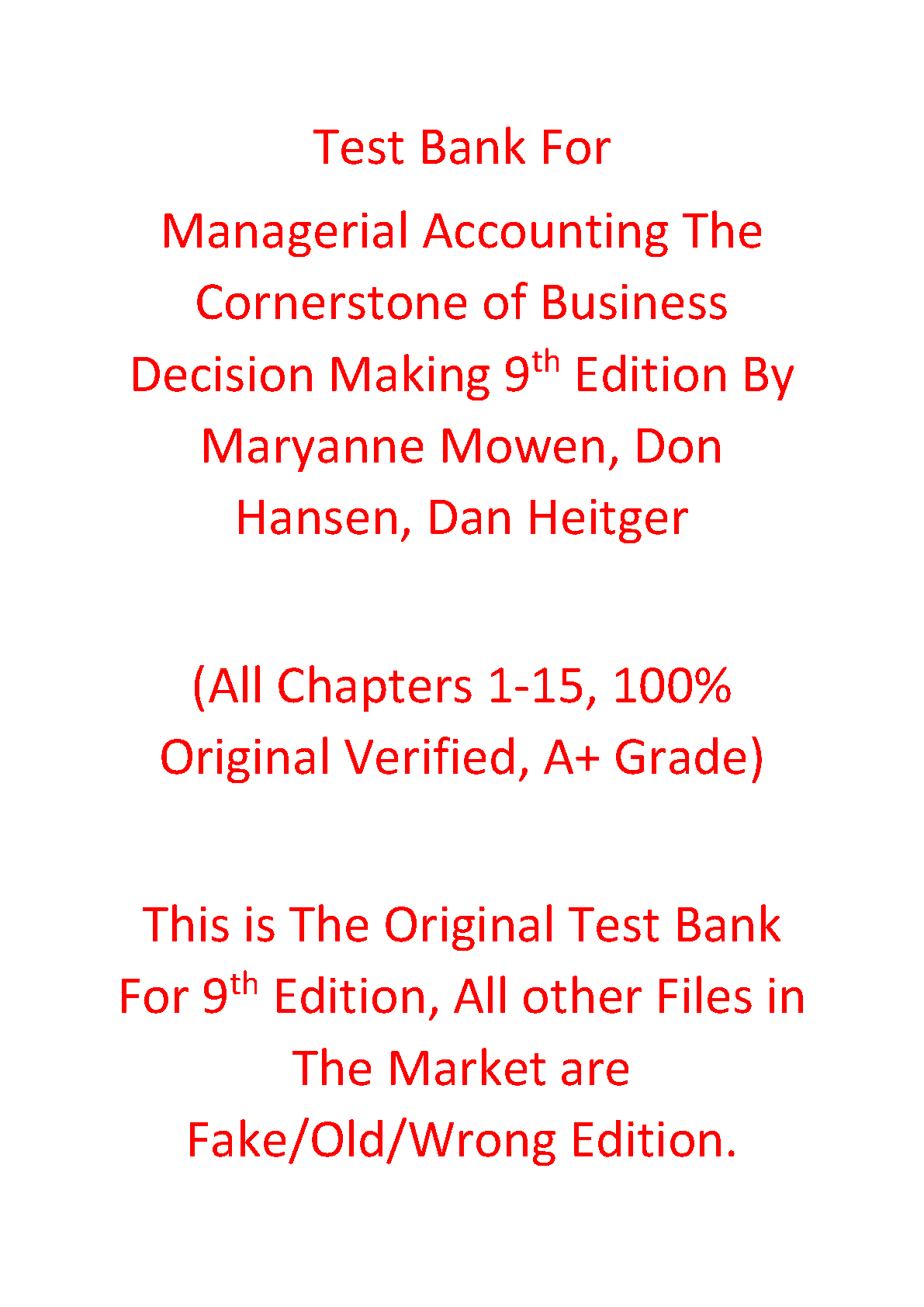 Test Bank for Managerial Accounting: The Cornerstone of Business Decision Making, 9th Edition by Maryanne M. Mowen, Don R. Hansen, Dan L. Heitger
