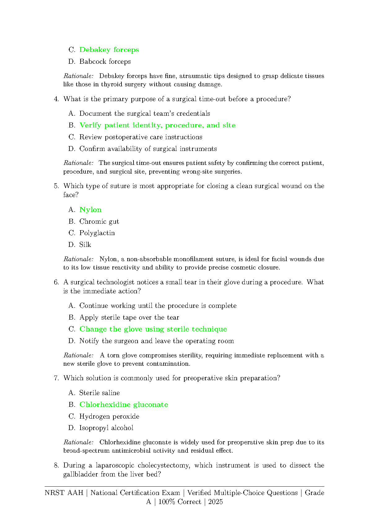 Ace your NRST AAH National Certification Exam on the first try! This comprehensive test bank, fully updated for the 2025 edition, provides a complete collection of multiple-choice questions, each with a verified correct answer and a detailed rationale. Master key topics including aseptic practices, sterilization techniques, surgical instrumentation, and patient safety. Designed to mirror the actual exam format, this study guide is your ultimate tool for effective preparation, helping you build confidence and secure a Grade A success.