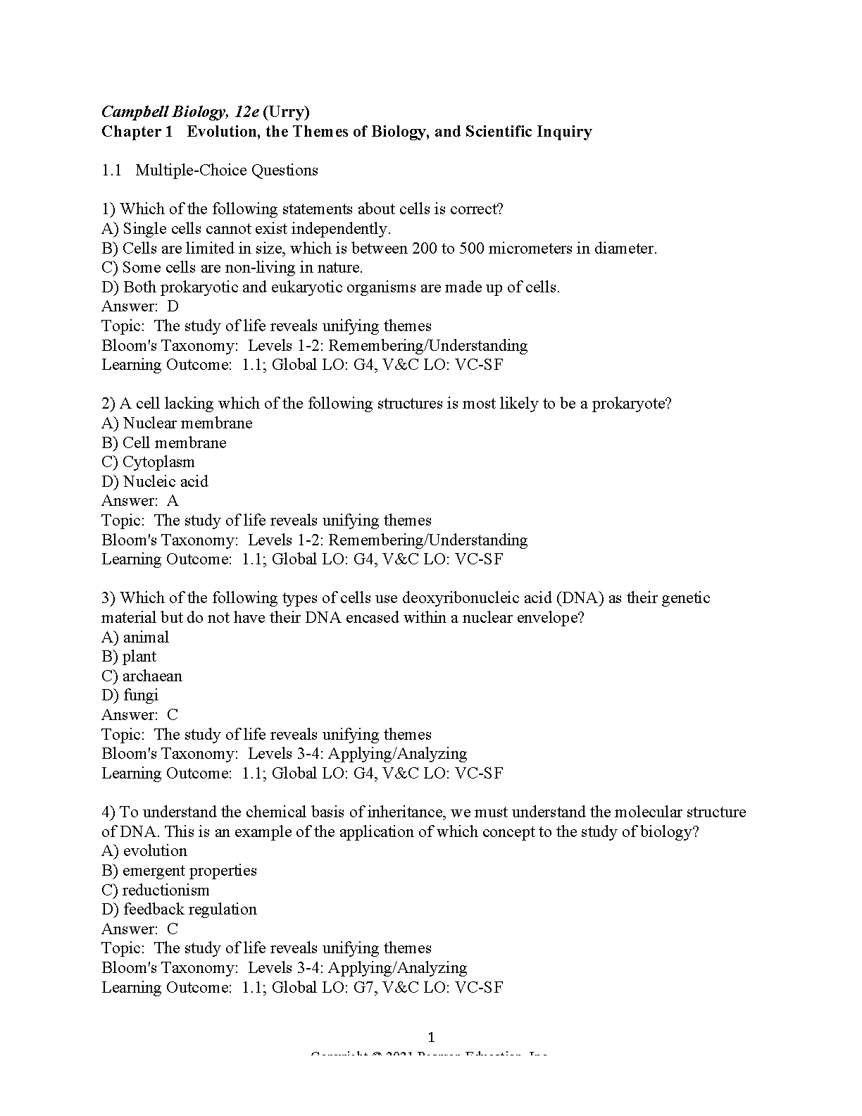 Unlock academic success in your biology course with our comprehensive Test Bank for Campbell Biology, 12th Edition. This essential study tool provides thousands of practice questions and detailed answers, directly aligned with the textbook chapters. Prepare effectively for your exams, identify areas for improvement, and deepen your understanding of core biological principles. Instant access allows you to start preparing immediately and confidently work towards achieving top grades.