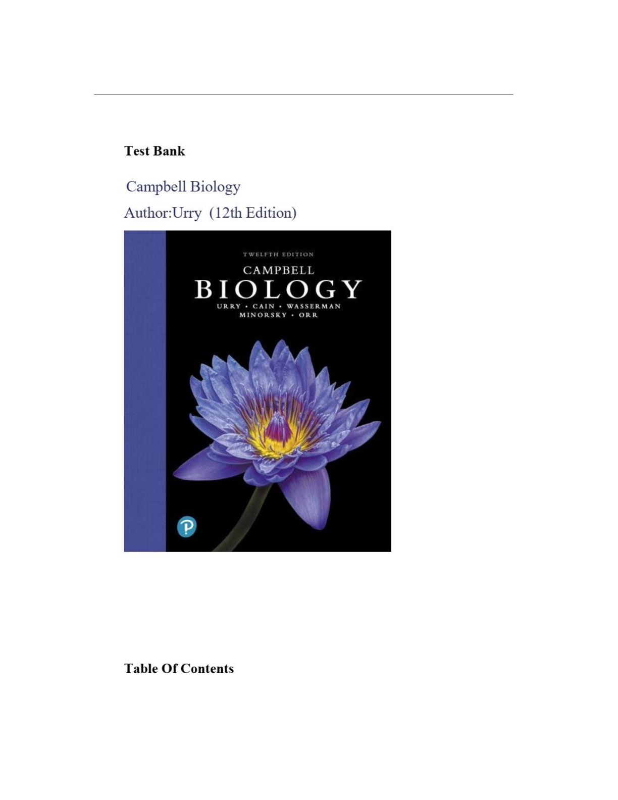 Test Bank for Campbell Biology, 12th Edition by Lisa A. Urry, Michael L. Cain, Steven A. Wasserman, Peter V. Minorsky, Rebecca B. Orr