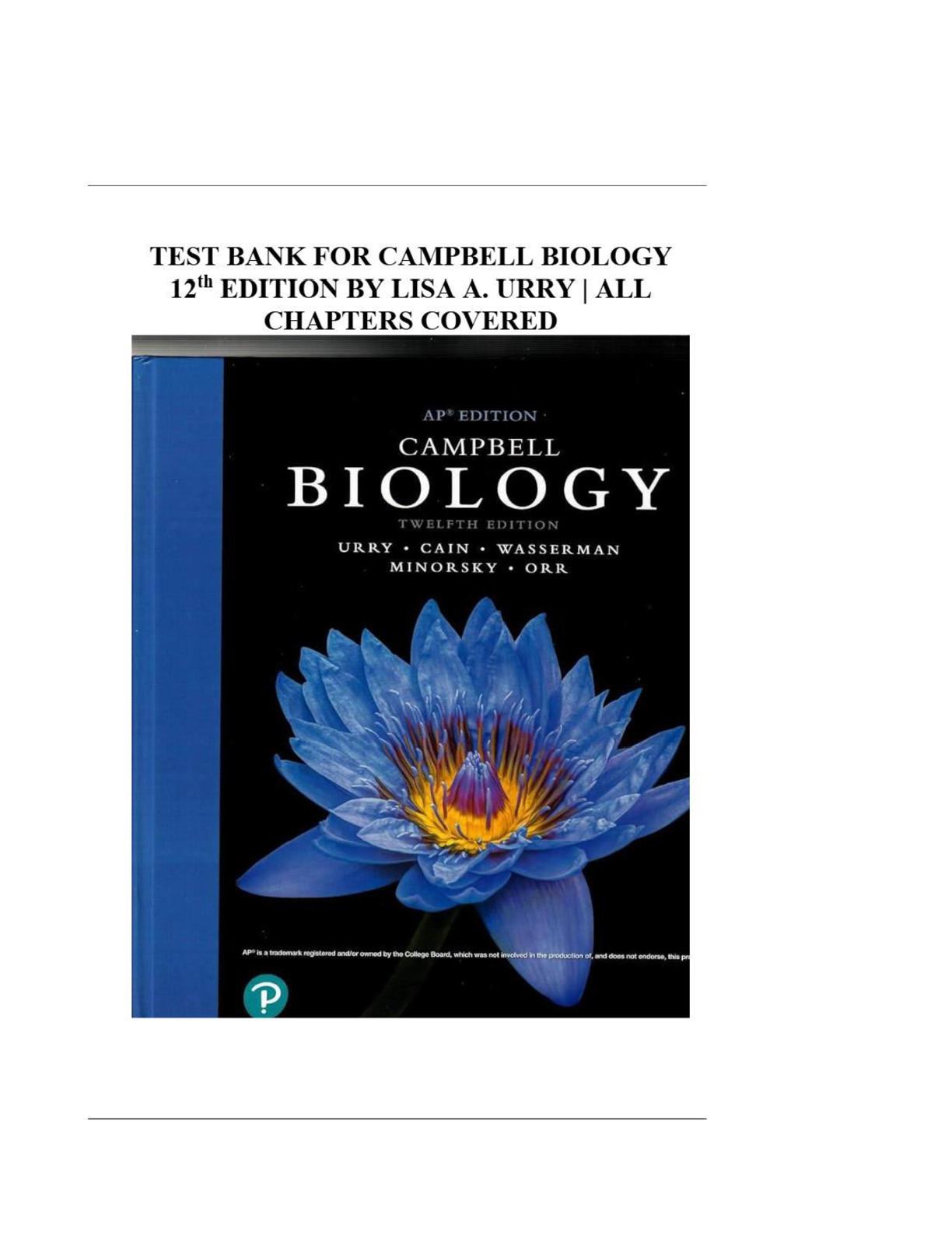Master your biology course with the complete Test Bank for Campbell Biology, 12th Edition by Urry et al. This essential study aid features a comprehensive collection of exam-style questions and detailed answers covering all chapters. It is expertly designed to help you thoroughly prepare for quizzes and exams, reinforce key concepts, and achieve academic success. Instant download available.