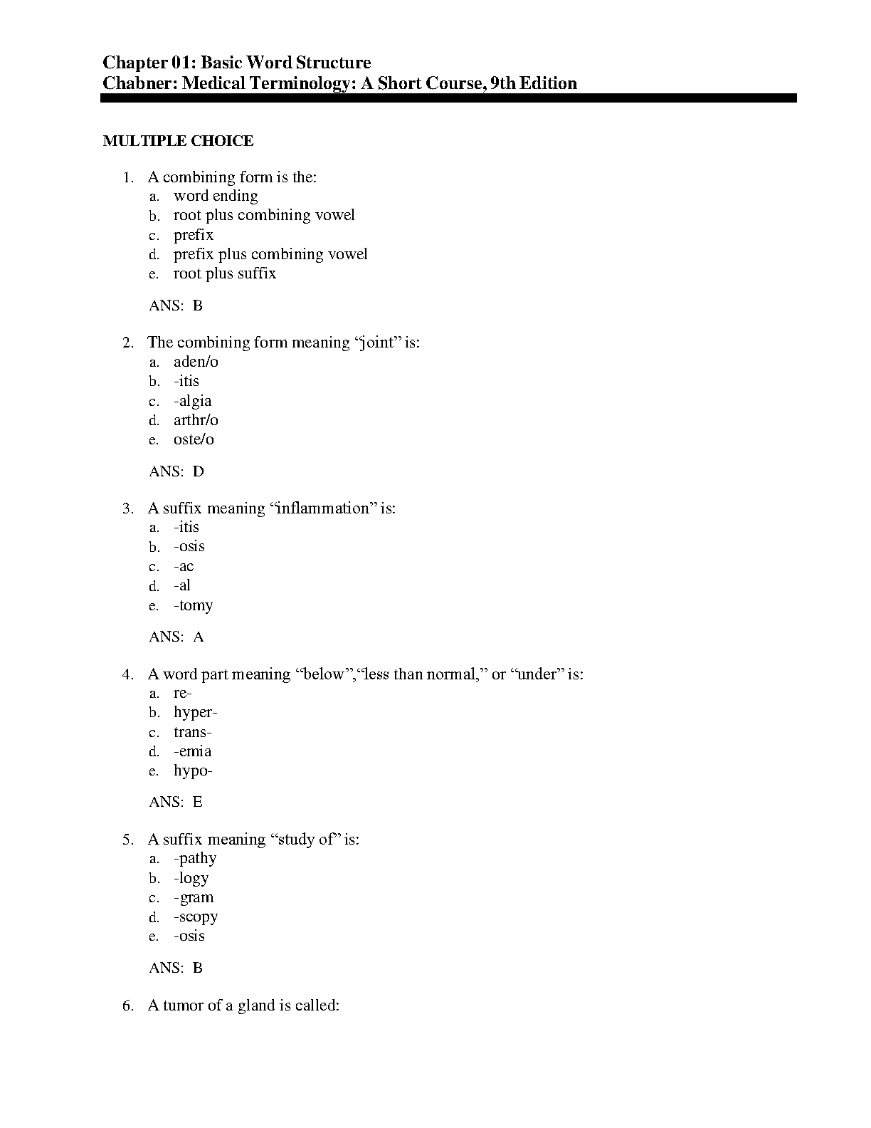 Prepare to excel in your medical terminology course with this comprehensive Test Bank for Davi-Ellen Chabner's 'Medical Terminology: A Short Course, 9th Edition.' This essential study aid provides an extensive collection of exam-style questions, including multiple-choice, matching, and fill-in-the-blank, meticulously organized by chapter. By practicing with these questions, you can effectively gauge your comprehension, pinpoint areas needing more review, and build the confidence required to succeed on your tests. Get immediate access to this invaluable resource and take the first step towards mastering medical language.