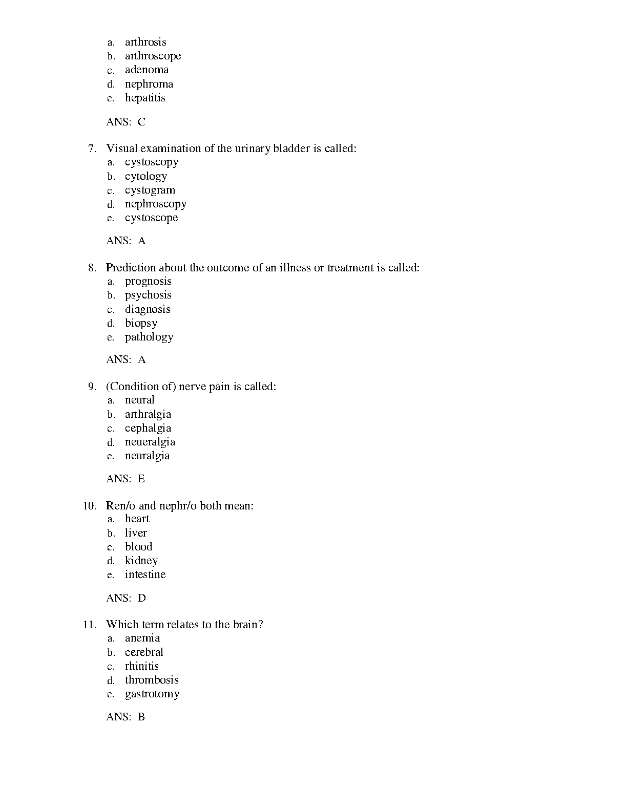 Test Bank for Medical Terminology: A Short Course, 9th Edition by Davi-Ellen Chabner, BA, MAT