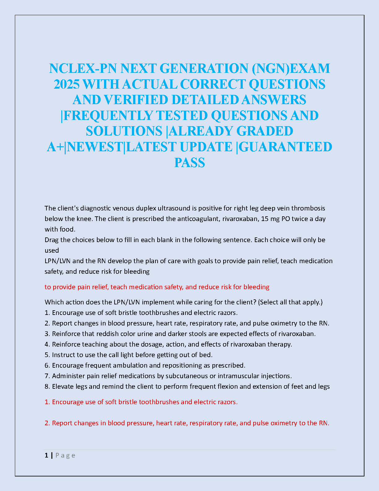 Ace the NCLEX-PN Next Generation (NGN) exam on your first try with our ultimate 2025/2026 test bank. This comprehensive resource is packed with a vast collection of frequently tested questions, each accompanied by verified, detailed answers and rationales. Our study guide is already graded A+ and is meticulously updated to reflect the latest NGN format, ensuring you are fully prepared for the real exam. Say goodbye to resits and hello to success with this guaranteed pass package.