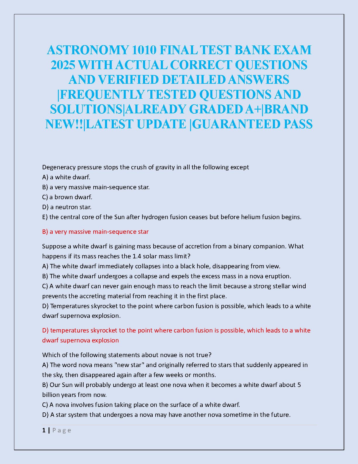Ace your Astronomy 1010 final exam with our latest 2025 Test Bank. This essential study guide is packed with actual, frequently tested exam questions and verified, detailed answers. Every solution is expertly crafted and confirmed for accuracy, reflecting an A+ standard of knowledge. Don't just study—strategize your success. This resource is your key to mastering complex topics, understanding exam patterns, and confidently securing a top grade. Download now for a guaranteed pass!