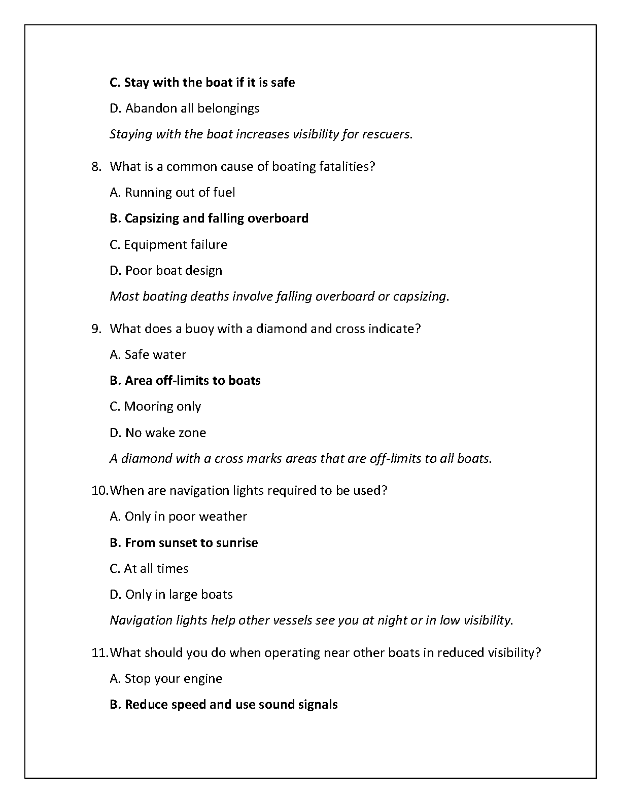Master the ILEARNTOBOAT final exam and get your boating license with confidence! This comprehensive test bank provides a complete set of questions and verified answers, covering all critical topics from the official boater safety course. From navigation rules and boat handling to safety equipment and emergency procedures, this study guide is your ultimate resource. Prepare effectively, understand the key concepts, and pass your exam on the very first attempt. Stop worrying and start boating safely!