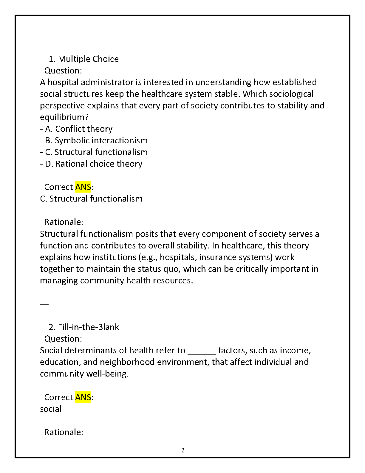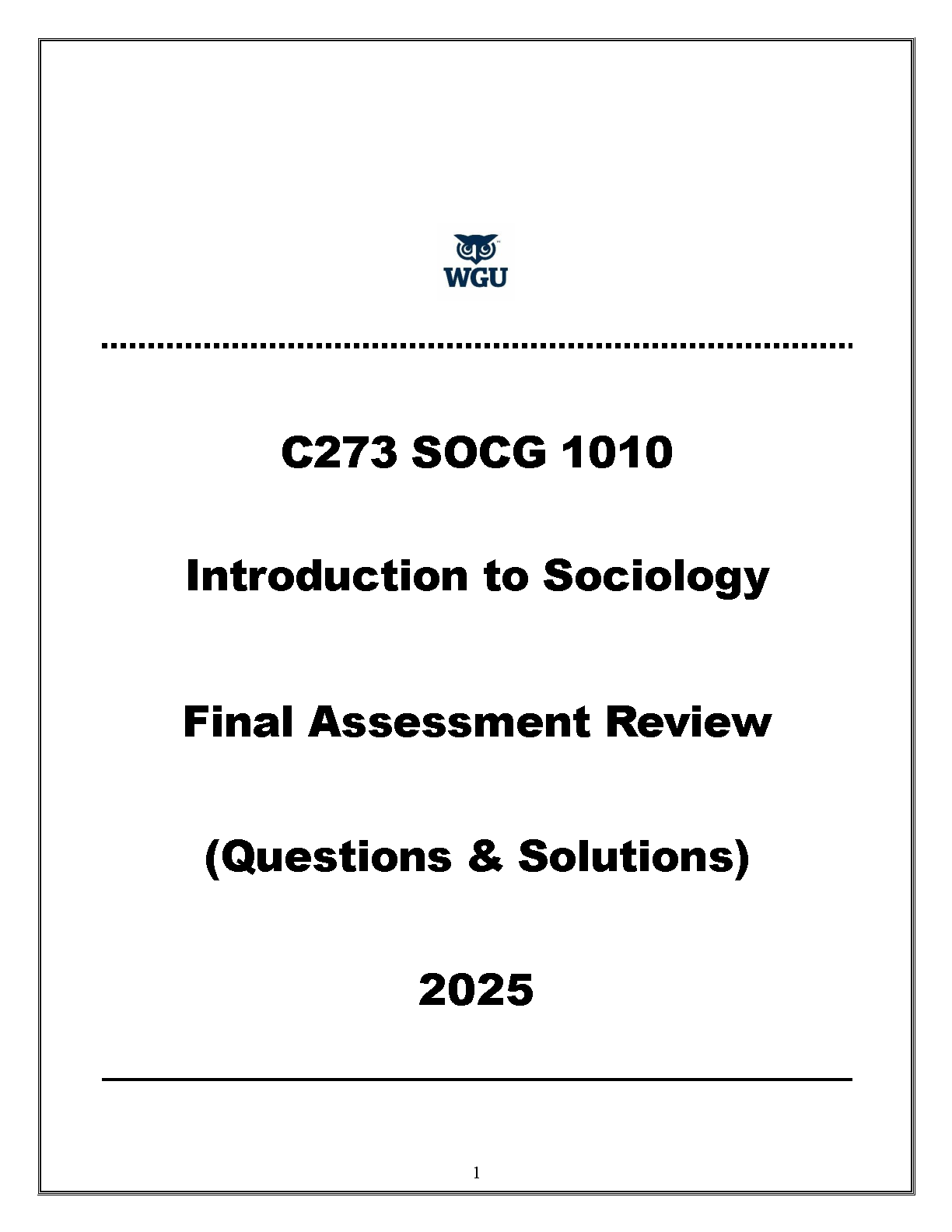 Struggling with WGU C273 Introduction to Sociology? Ace your final assessment with our brand-new, comprehensive review guide for the 2025/2026 academic year. This resource is meticulously crafted with a complete set of exam-style questions and detailed, step-by-step solutions. It covers all the essential topics you need to know for the SOCG 1010 final. Stop worrying about resits and gain the confidence to pass on your very first attempt. Download now and take the most effective step towards mastering sociology and succeeding in your WGU journey!