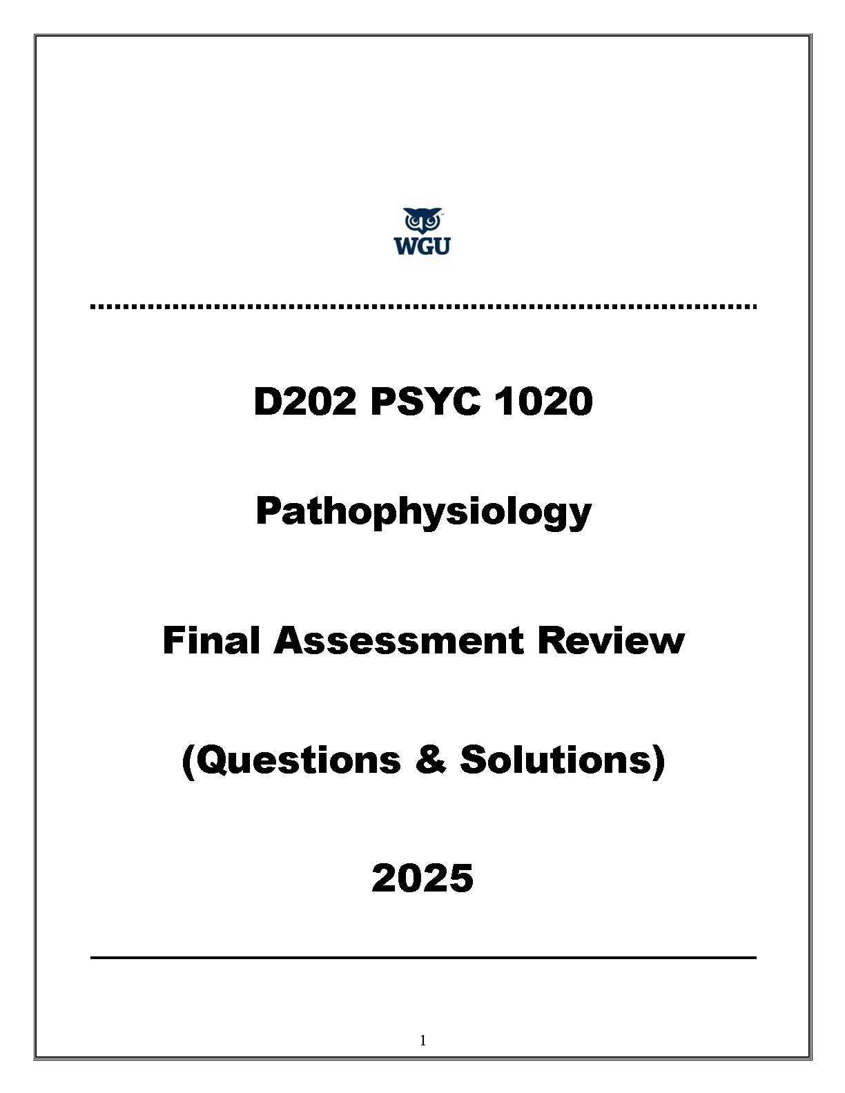 Get ready to ace your WGU D202 PSYC 1020 Pathophysiology final with this comprehensive 2025 assessment review. This test bank is packed with targeted questions and verified solutions, designed to help you master key concepts and approach your exam with confidence. A must-have study tool for any student aiming for success in WGU's Pathophysiology course.