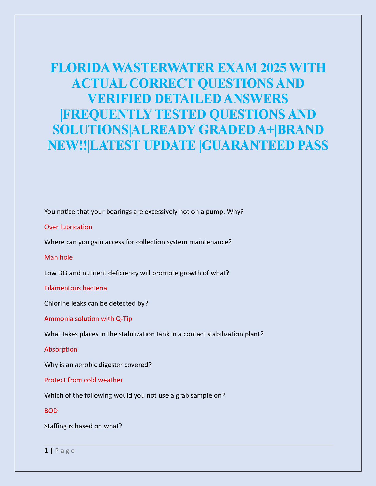 Florida Wastewater Exam 2025/2026 Test Bank: A+ Graded Questions & Verified Answers for Guaranteed Success