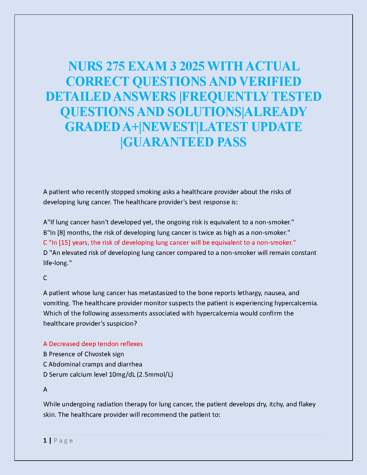 Ace your NURS 275 Exam 3 with our latest 2025 test bank. This comprehensive resource is packed with actual exam questions, each accompanied by verified, detailed answers and solutions. Designed to cover frequently tested topics, this guide is already A+ graded and is guaranteed to help you master the material. Prepare effectively, boost your confidence, and pass your exam on the first attempt with this essential study tool. Get the latest update and secure your success in NURS 275.