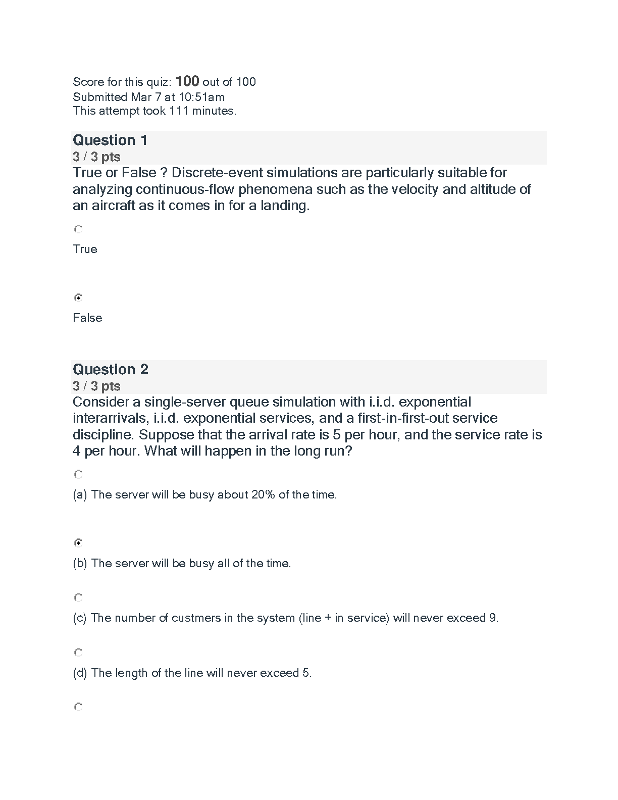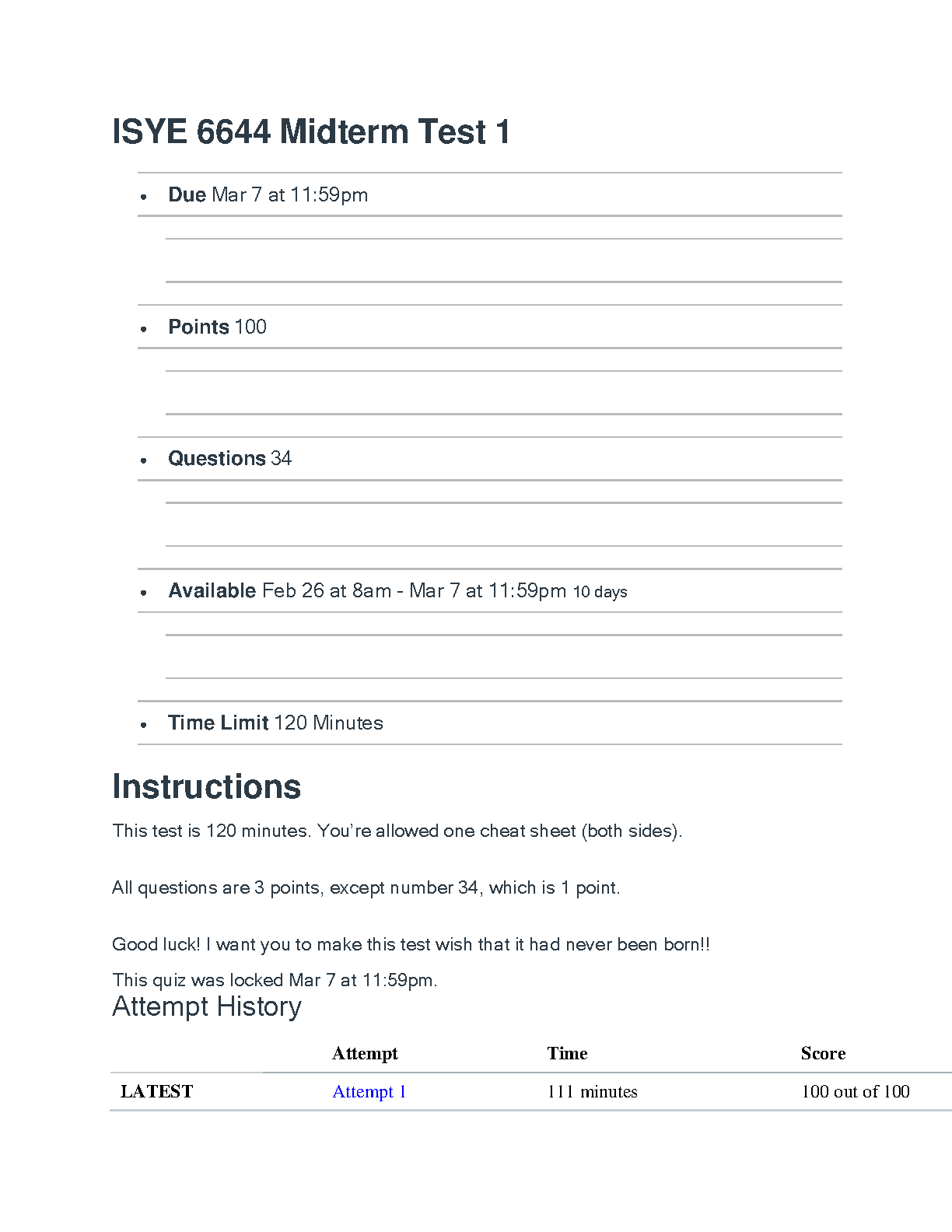 ISYE 6644 Simulation Midterm Test 1 Test Bank - Verified Questions and Correct Answers