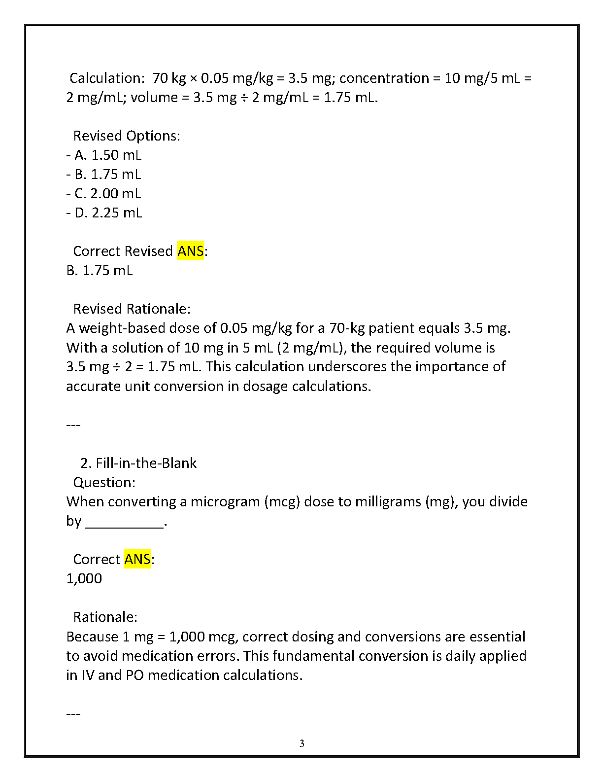 Unlock success in your WGU nursing program with this comprehensive Final Assessment Review for D441 NURS 2002 - Medical Dosage Calculations & Pharmacology. This newly updated 2025/2026 guide is meticulously designed to help you master the material and pass your final exam on the very first try. Inside, you'll find a complete set of practice questions paired with detailed, step-by-step solutions, covering all key topics in dosage calculation and pharmacology. Stop worrying about resits and start studying smarter. Download this essential resource today to build your confidence and ace your final assessment!