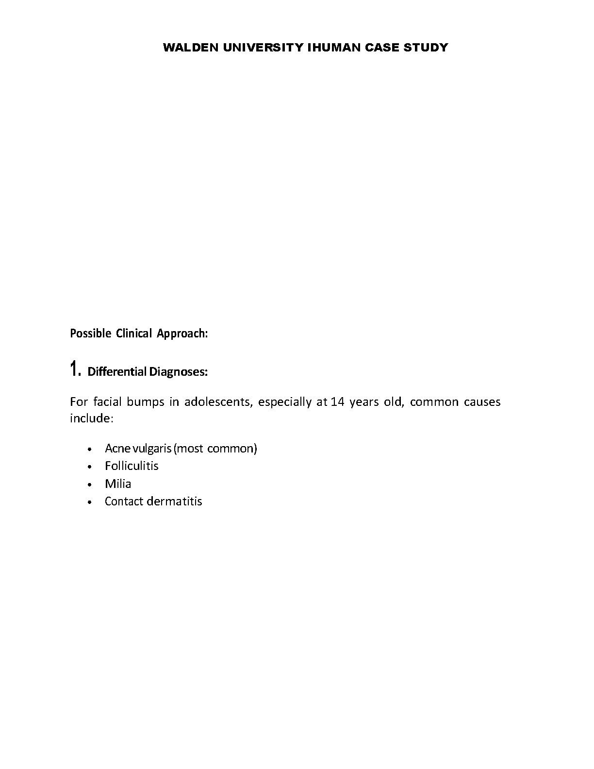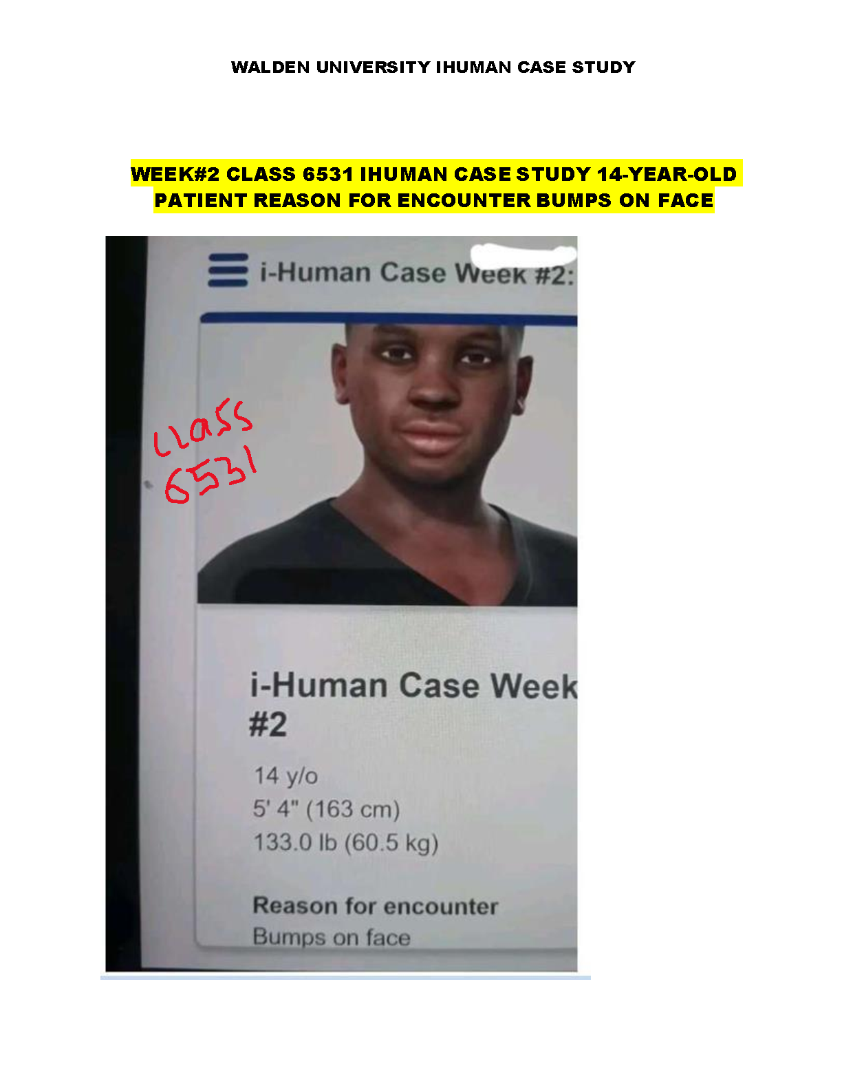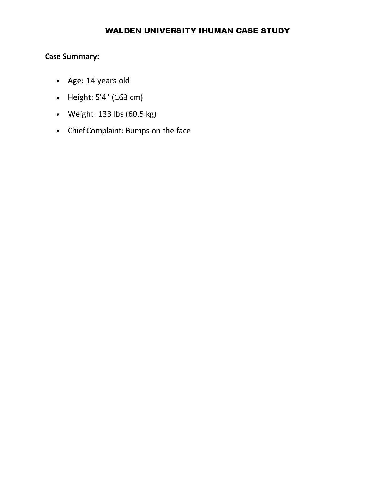 Walden University Class 6531 Week 2 iHuman Case Study: 14-Year-Old Patient - Bumps on Face | New 2025/2026 First Attempt Pass Solution