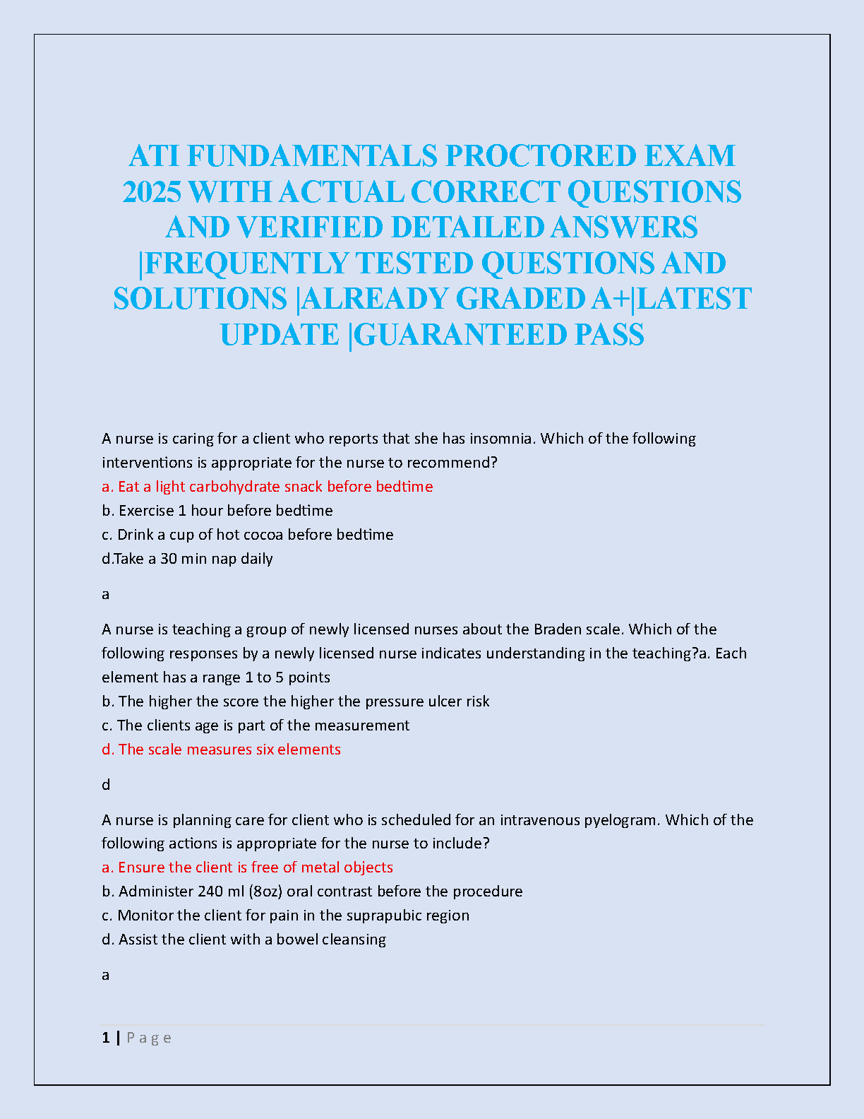 Prepare to excel on your nursing assessment with our definitive 2025 ATI Fundamentals Proctored Exam study guide. This comprehensive test bank features a collection of the latest, frequently tested questions complete with verified, detailed answers and expert solutions. Designed to mirror the actual exam, this resource helps you study smarter, not harder, ensuring you grasp key concepts for a guaranteed pass and an A+ grade. Master the fundamentals of nursing and walk into your proctored exam with confidence.