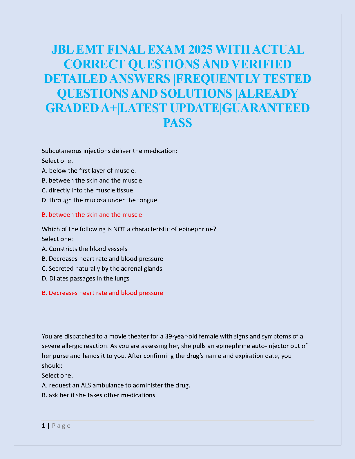 Ace your 2025 JBL EMT Final Exam with our comprehensive test bank, meticulously aligned with the 12th Edition of 'Emergency Care and Transportation of the Sick and Injured' by the American Academy of Orthopaedic Surgeons (AAOS). This study guide is packed with frequently tested questions, verified correct answers, and detailed solutions to ensure you achieve an A+ grade. Designed as the latest updated resource, it's your key to understanding critical concepts and passing your certification on the first attempt. Avoid resits and build your confidence with this guaranteed-to-pass preparation tool.