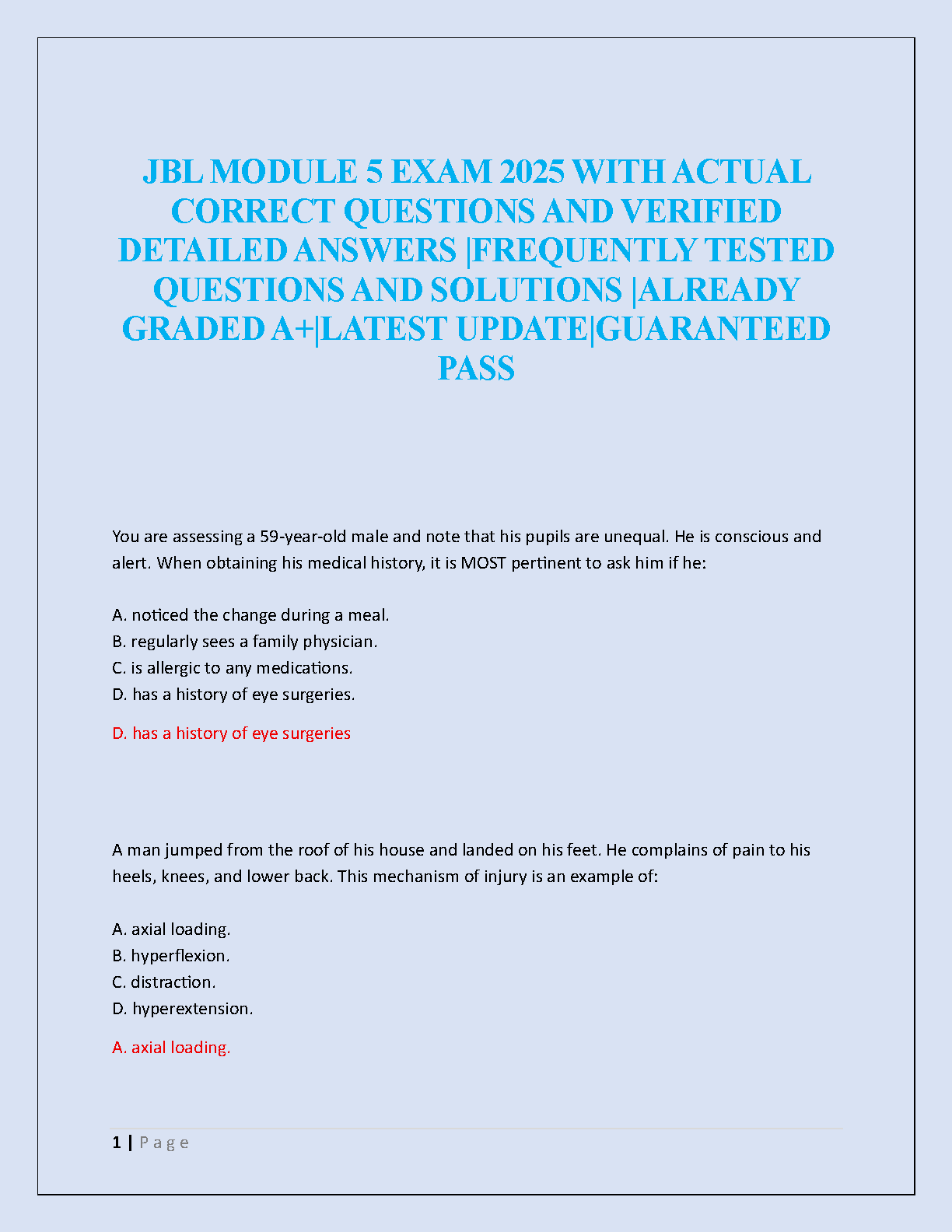 Ace your JBL Module 5 Exam with this comprehensive test bank for 2025! This study guide features a complete collection of actual, frequently tested questions, each accompanied by a detailed, verified answer and solution. Updated for the latest curriculum and already proven to help students achieve A+ grades, this resource is your key to passing with confidence. Don't leave your success to chance—get the guaranteed pass you need with these expertly prepared exam materials.
