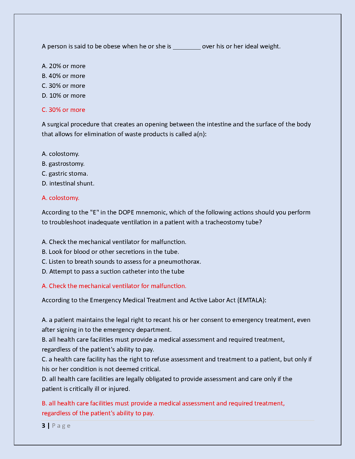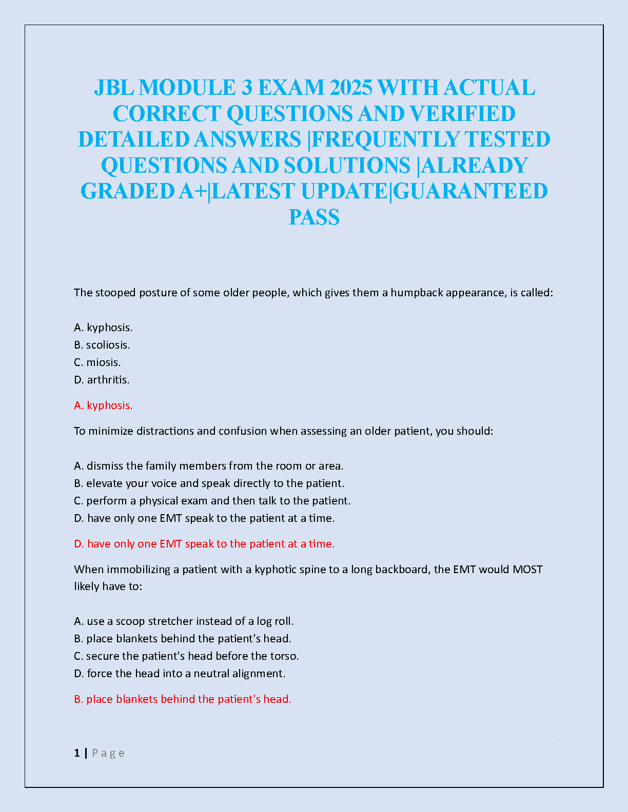 JBL Module 3 Exam Test Bank 2025/2026: Comprehensive Q&A with Verified Solutions for EMT Students | A+ Grade Guaranteed