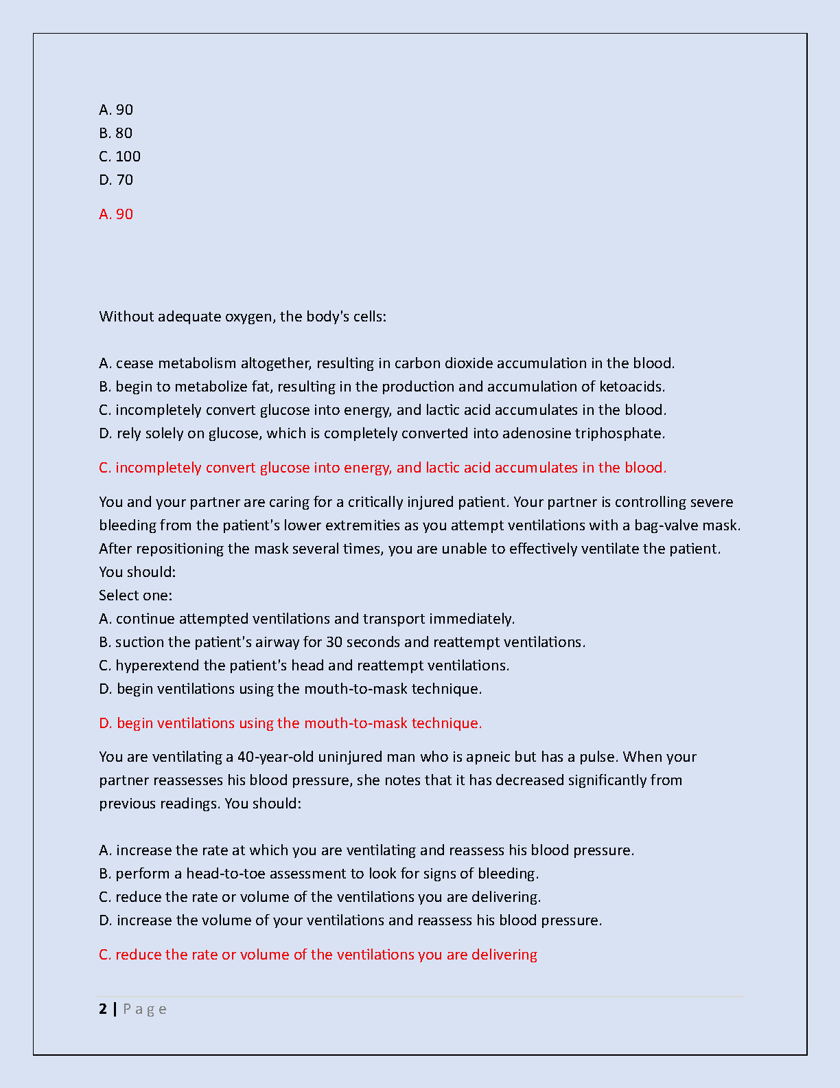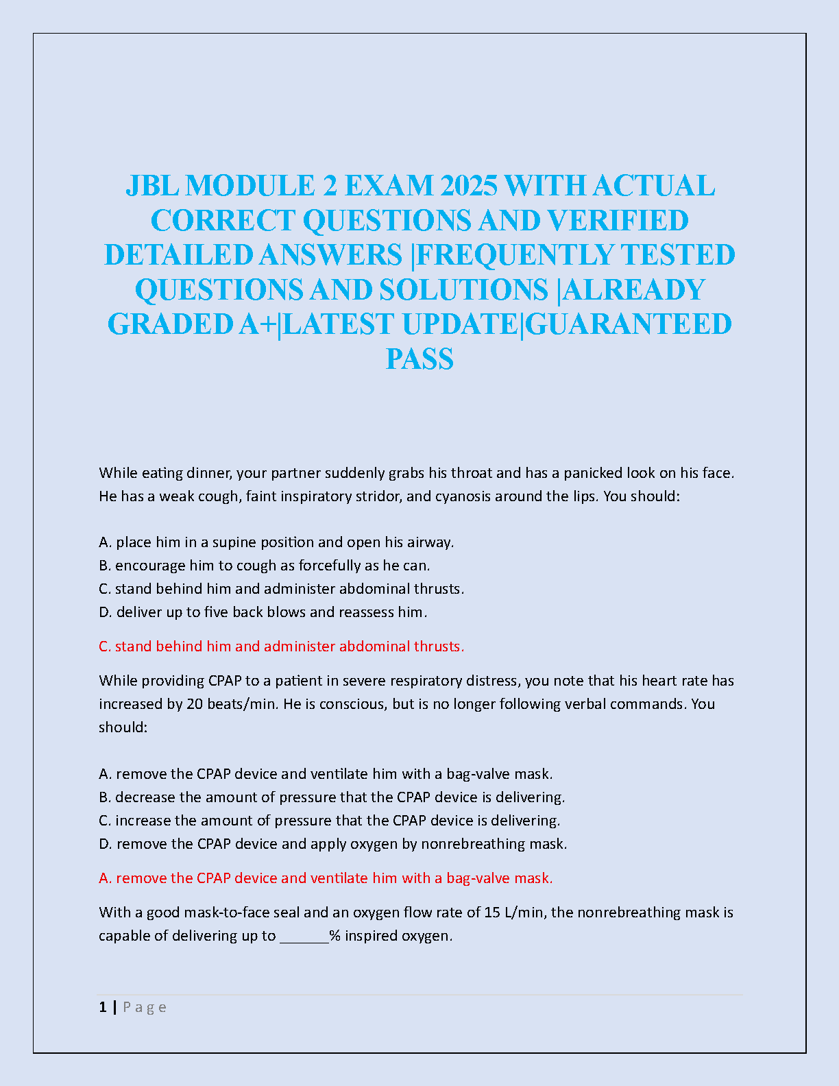 Ace your JBL Module 2 Exam with our premier test bank, fully updated for the 2025/2026 academic year. This essential study guide is meticulously aligned with the 'Emergency Care and Transportation of the Sick and Injured, 12th Edition' by AAOS. Inside, you'll discover a comprehensive collection of actual exam questions, each with verified correct answers, designed to help you master critical concepts and pass on your first attempt. Eliminate the stress of resits and secure an A+ grade with this indispensable resource for all EMT students.