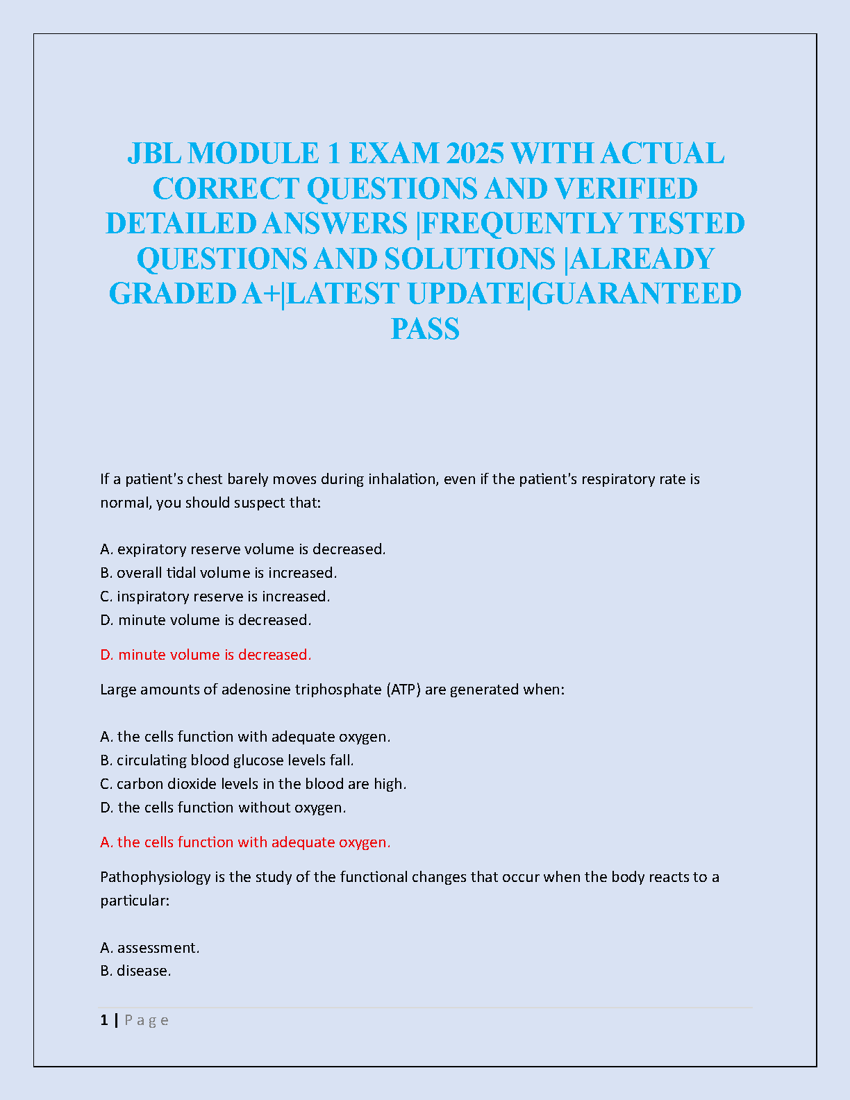 Master the fundamentals for your JBL Module 1 exam with this complete test bank for 'Emergency Care and Transportation of the Sick and Injured, 12th Edition.' This resource provides a comprehensive collection of exam-style questions with verified, detailed answers, covering crucial topics in pathophysiology, patient assessment, and more. Directly aligned with the American Academy of Orthopaedic Surgeons (AAOS) curriculum, this study guide is expertly designed to help you ace your exam, achieve an A+ grade, and build a strong foundation for your EMT career. Get instant access to the latest, updated questions and solutions for guaranteed success.
