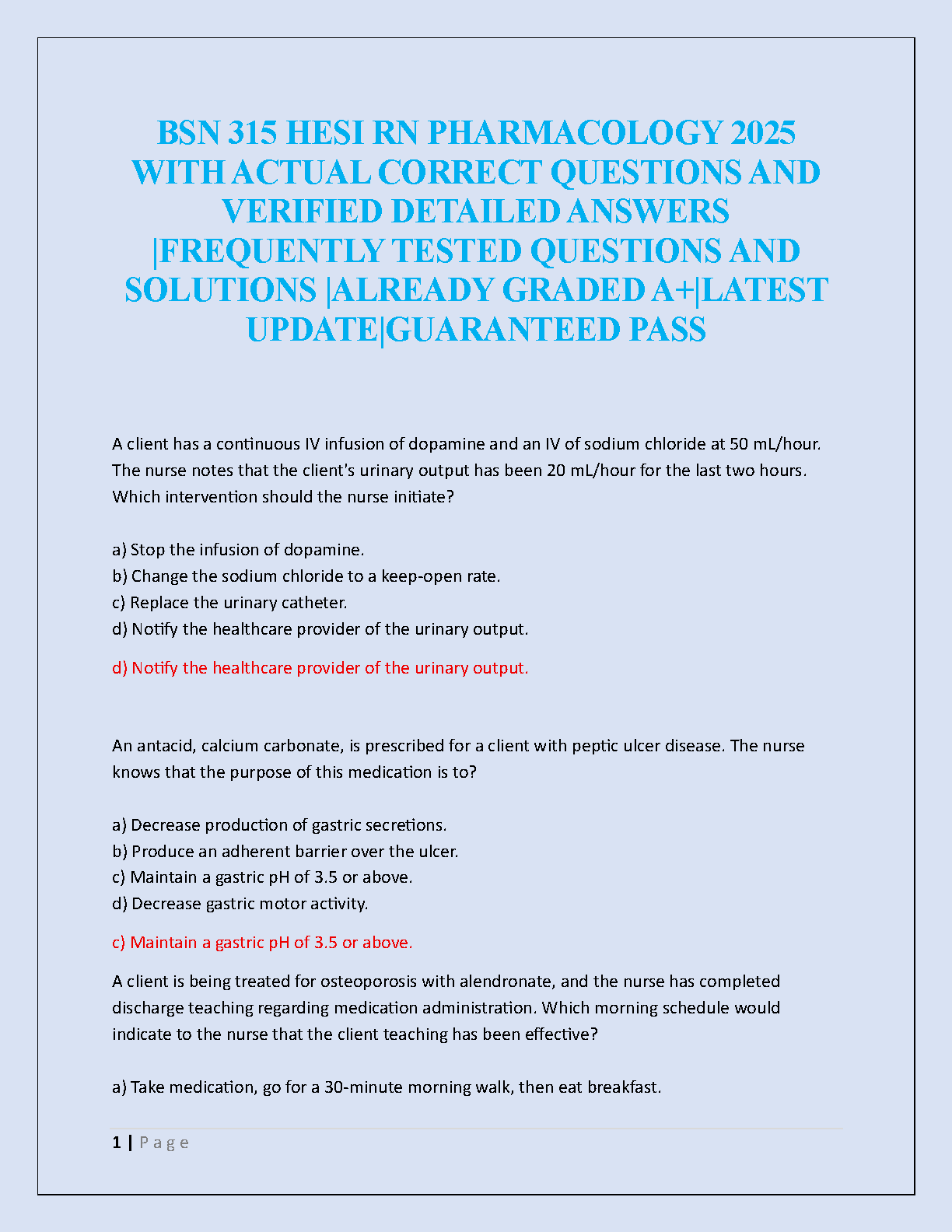 Master HESI RN Pharmacology: BSN 315 Test Bank 2025 | Verified Questions & A+ Graded Answers for Exam Success
