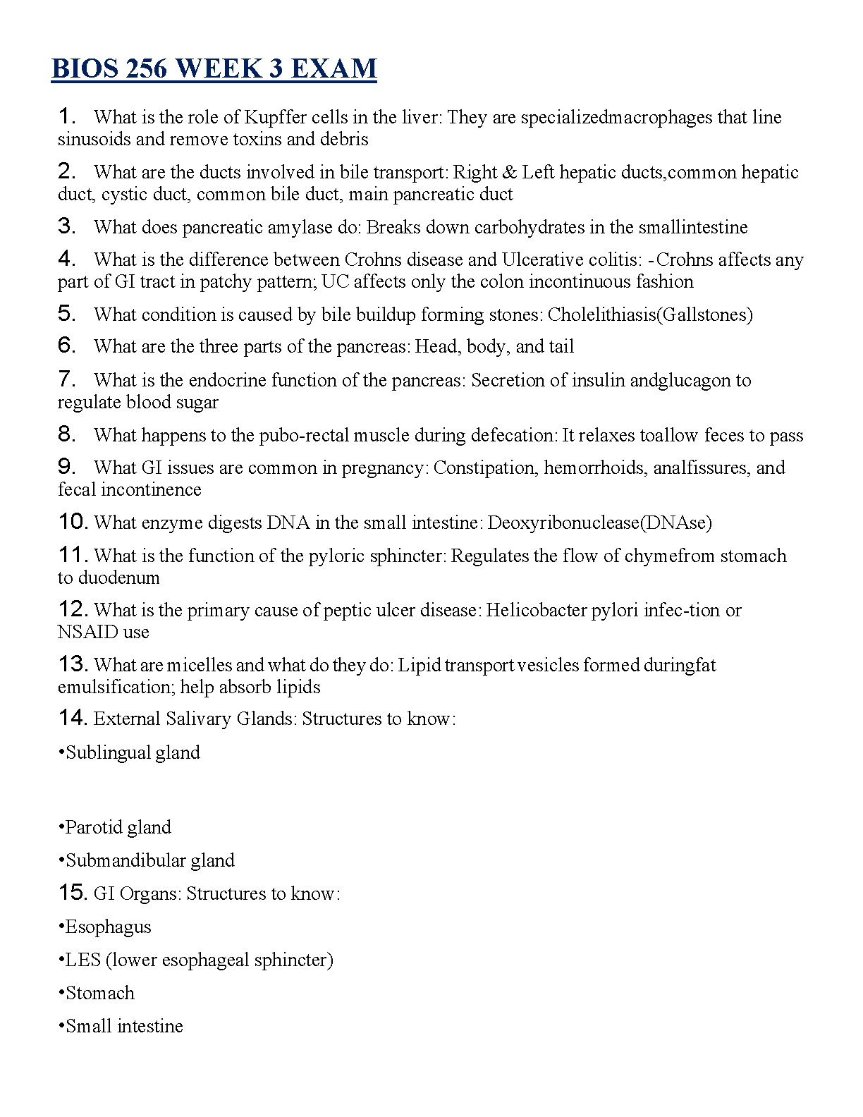 Unlock exam success with our latest 2025/2026 study guide for the BIOS 256 Week 3 Exam. This comprehensive resource provides detailed, easy-to-understand answers to key questions covering the digestive system, including the liver, pancreas, and GI organs. Master complex topics like Crohn's disease, peptic ulcers, and bile transport to ensure you pass your exam on the first attempt. This is the ultimate tool to avoid resits and excel in your anatomy and physiology course.