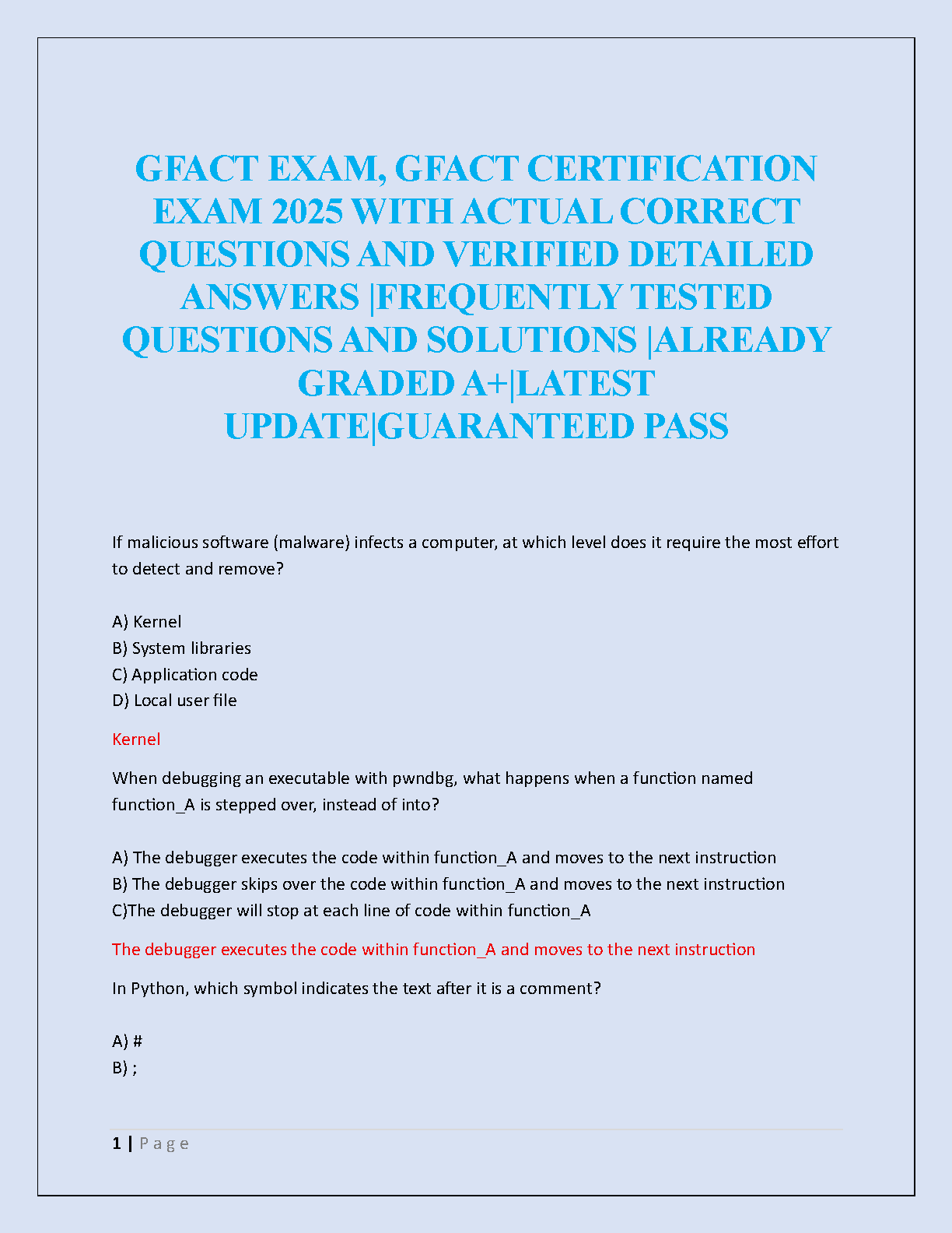 HackedExams is the website to download all resources for students who want to pass their exams on their first attempt. Our website offers all exam materials, including practice questions with answers, test banks, study guides, notes, summaries, and more for nursing, computer science, biology, psychology, law, and others. With resources from popular exam bodies like ATI, AQA, OCR, Edexcel, Comptia, Azure, and more, you'll easily find everything you need to get certified. Avoid resitting exams; trust in HackedExams.com to give you the resources to pass on your first attempt. Get access to exams from 2019 to 2023 and start your path to success today. "Avoid resits, get certified within days, and pass your exams on your first attempt."