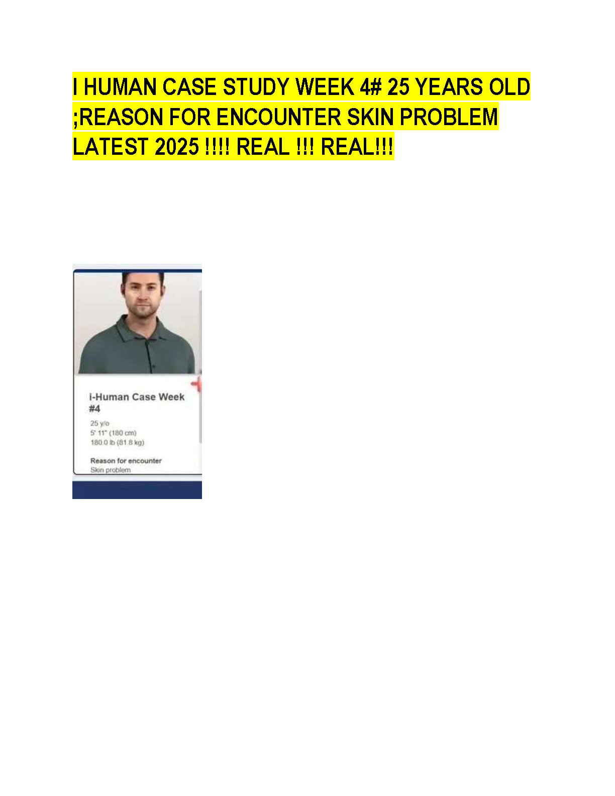 iHuman Case Study Week 4: 25-Year-Old Male - Skin Problem | Latest 2025/2026 Study Guide for Exam Success