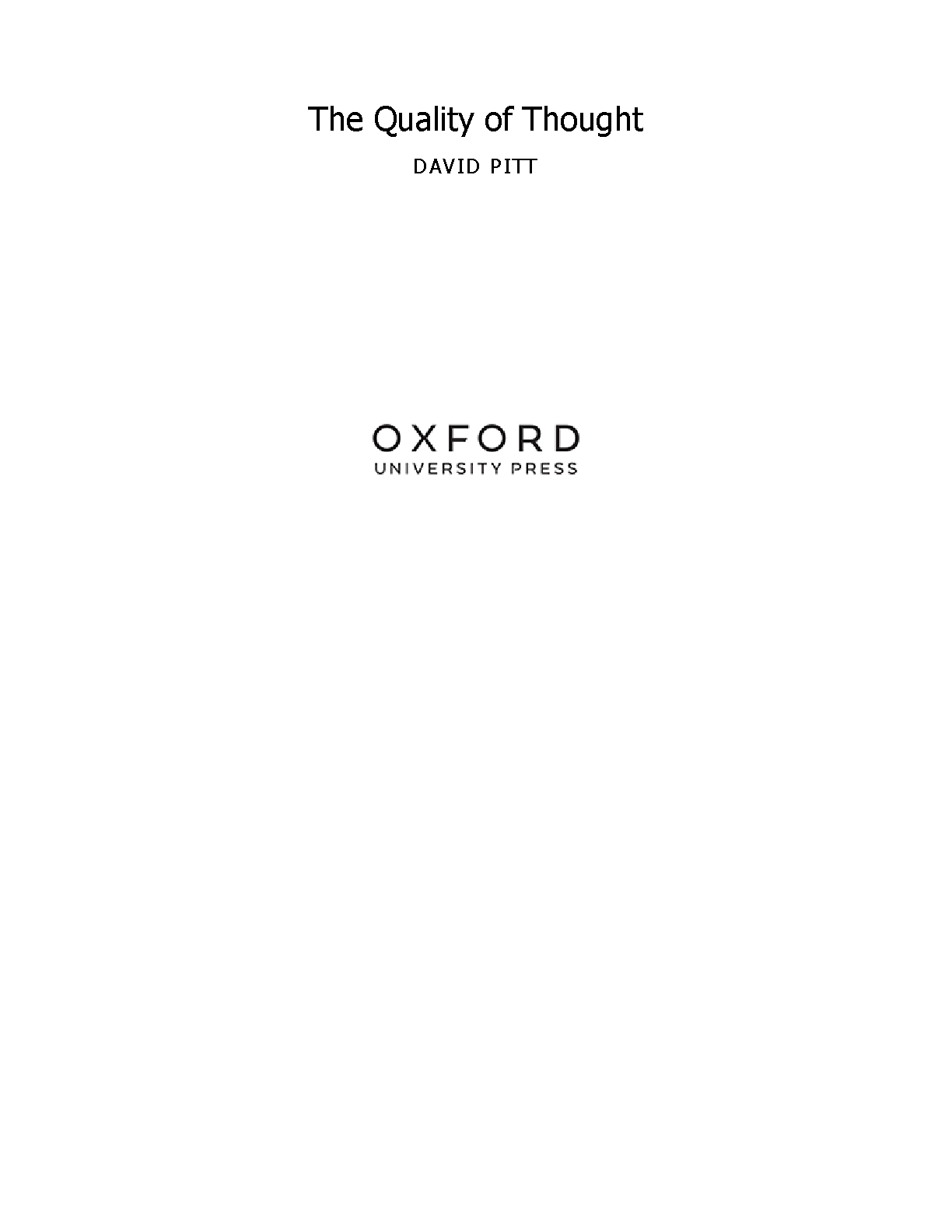 The Quality of Thought, 1st Edition by David Pitt | 2025/2026 Exam Elaboration & Study Guide | Ace Your Philosophy Exams