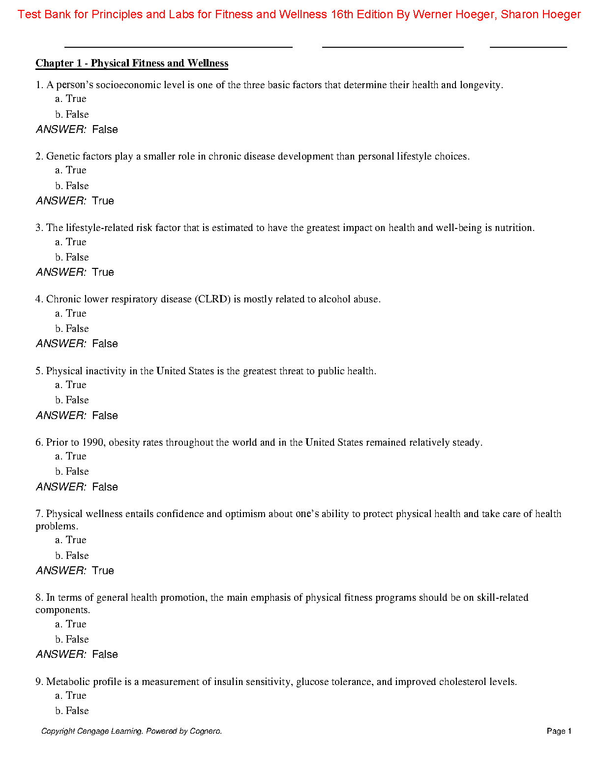 Test Bank for Principles and Labs for Fitness and Wellness, 16th Edition by Werner Hoeger and Sharon Hoeger
