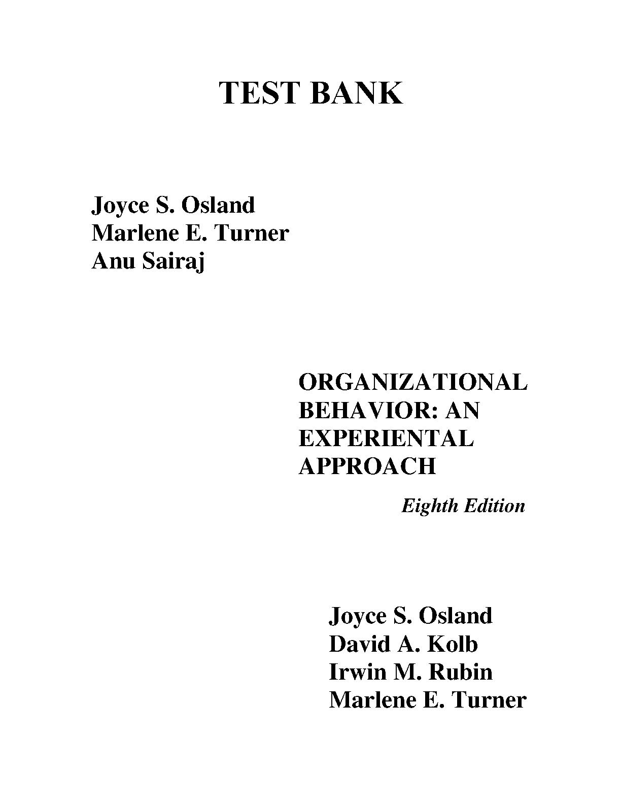 Test Bank for Organizational Behavior: An Experiential Approach, 8th Edition by Joyce S. Osland, David A. Kolb, Irwin M. Rubin, Marlene E. Turner