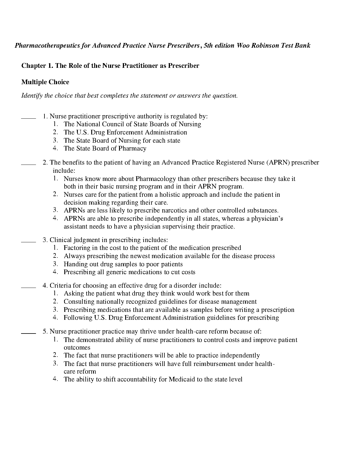 Test Bank for Pharmacotherapeutics for Advanced Practice Nurse Prescribers, 5th Edition by Teri M. Woo, Marylou V. Robinson