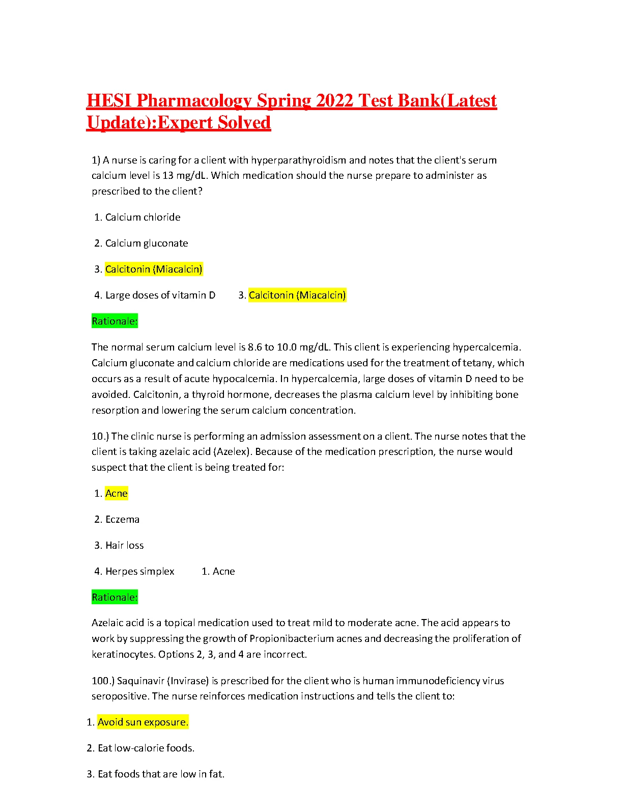 TEST BANK FOR HESI Pharmacology Spring Latest Update 2023