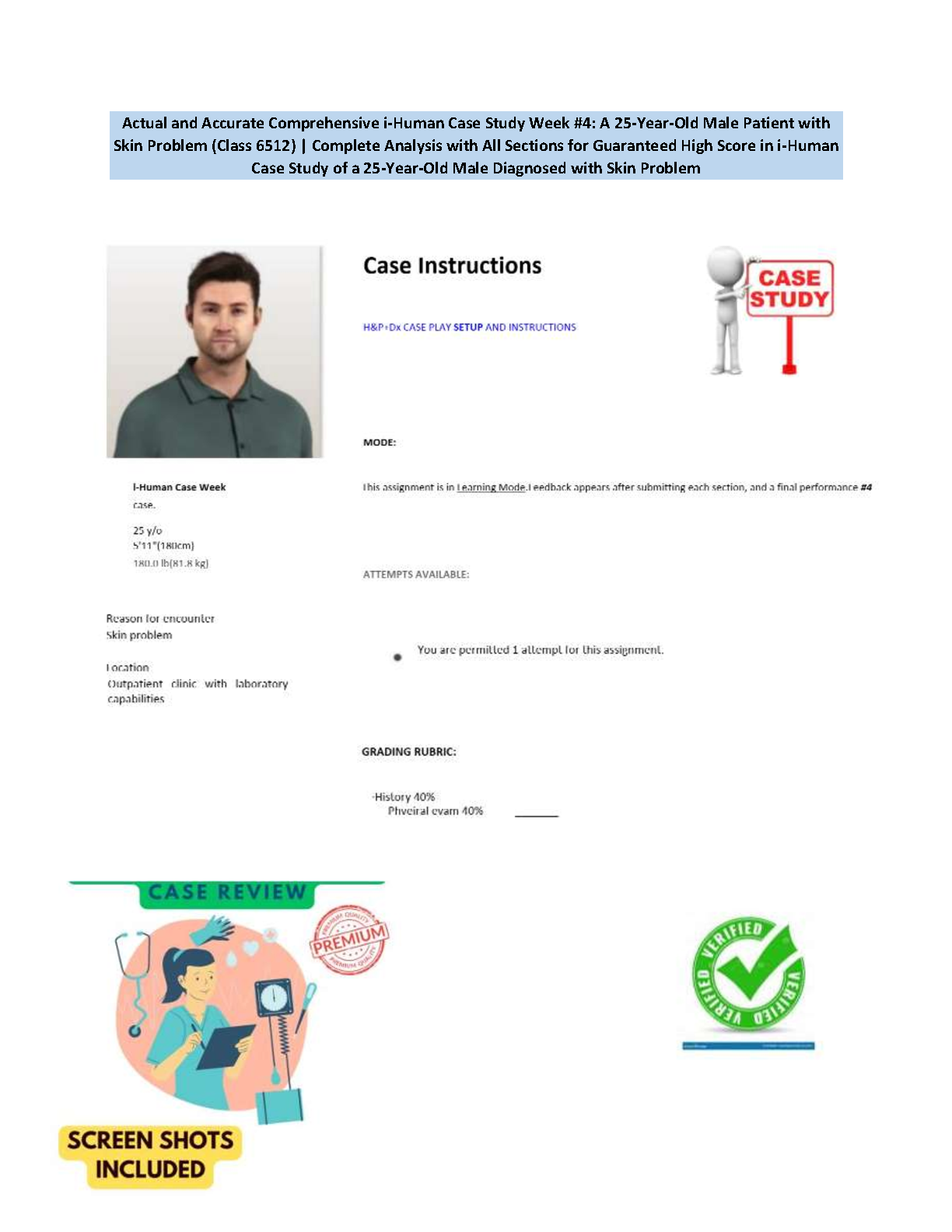 i-Human Case Study Week 4: 25-Year-Old Male with Skin Problem (Class 6512) | Verified 2025/2026 Study Guide for A+ Results