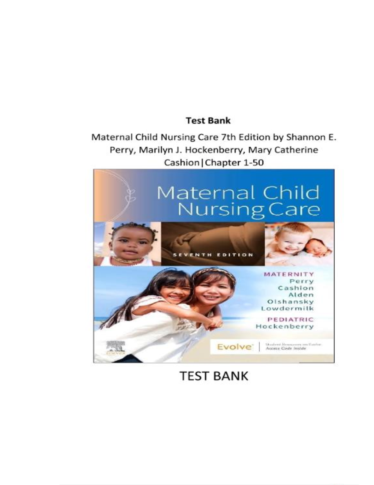 Test Bank for Maternal Child Nursing Care, 7th Edition by Shannon E. Perry, Deitra Leonard Lowdermilk, Mary Catherine Cashion & Kathryn R. Alden
