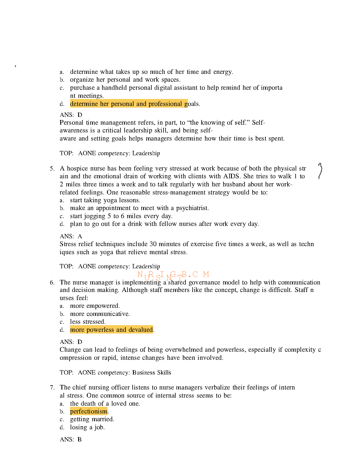 Test Bank for Leading and Managing in Nursing, 8th Edition by Patricia S. Yoder-Wise and Susan A. Sportsman