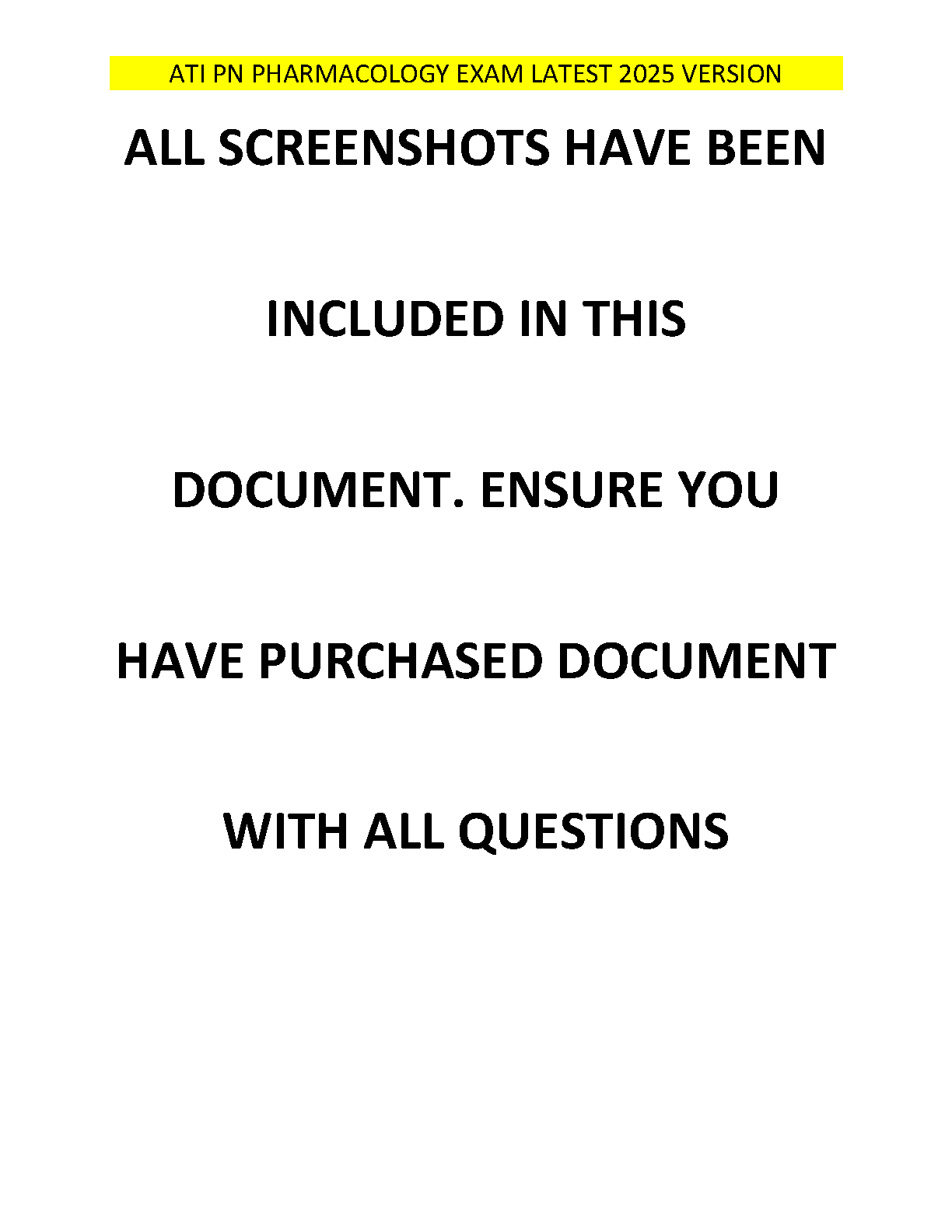 Unlock your potential and ace the ATI PN Pharmacology Exam with our comprehensive 2025 Test Bank. Developed by Assessment Technologies Institute (ATI), this essential study guide provides a complete set of verified questions and detailed answers, covering all key pharmacology topics for Practical Nursing students. This resource is meticulously designed to mirror the actual exam format, helping you build confidence, master critical concepts, and pass on your first attempt. Get immediate access to the study materials you need to succeed in your nursing career.